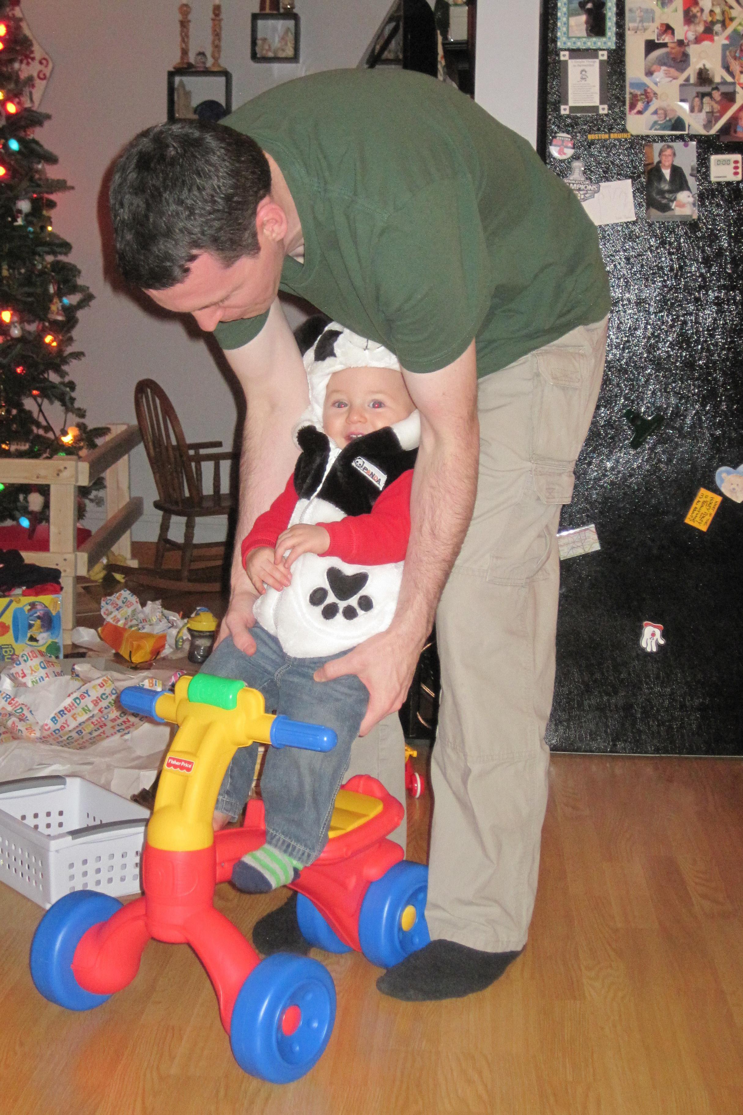 Getting Ready for His First Scooter Ride