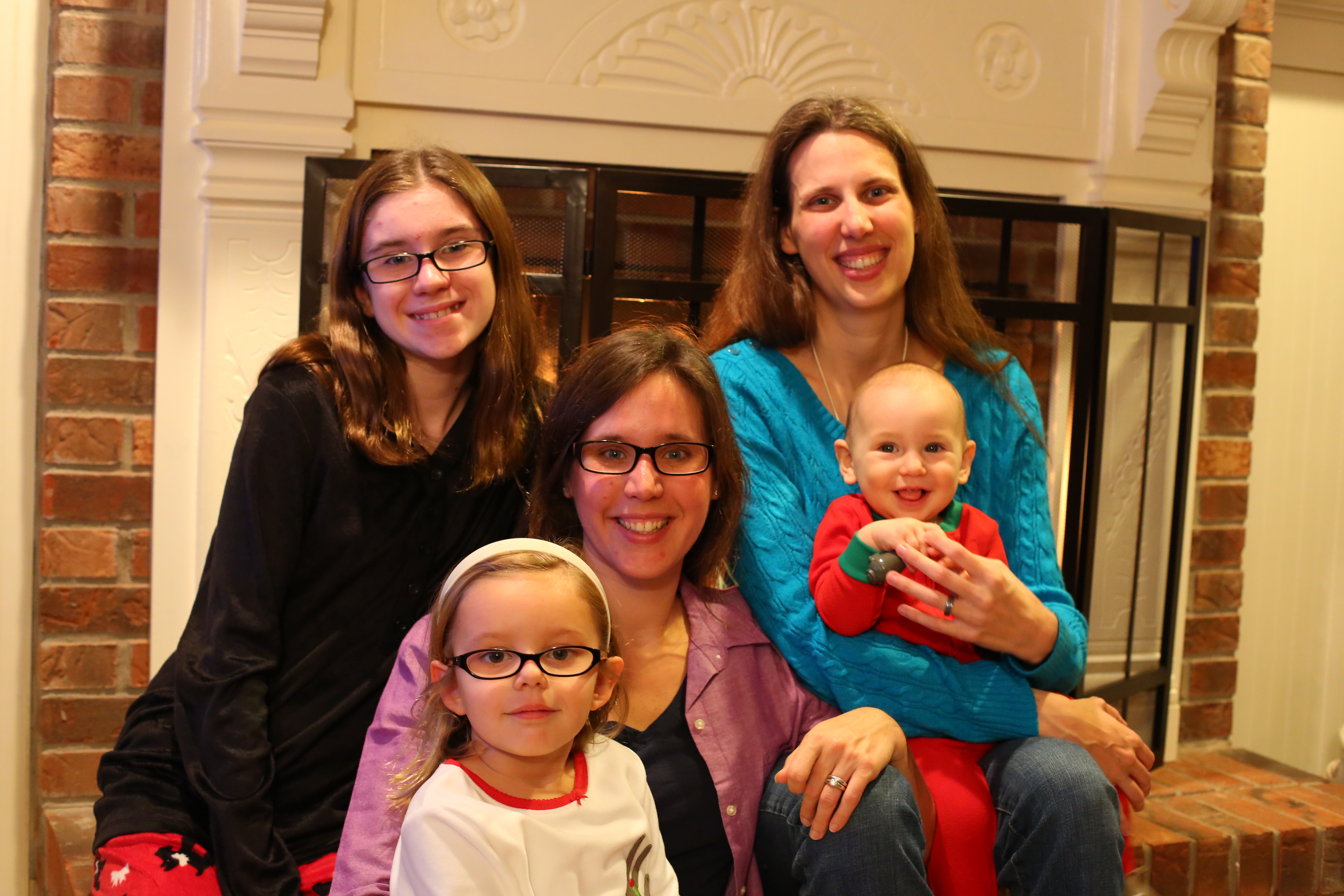 Sisters and Cousins by the Fireplace.JPG