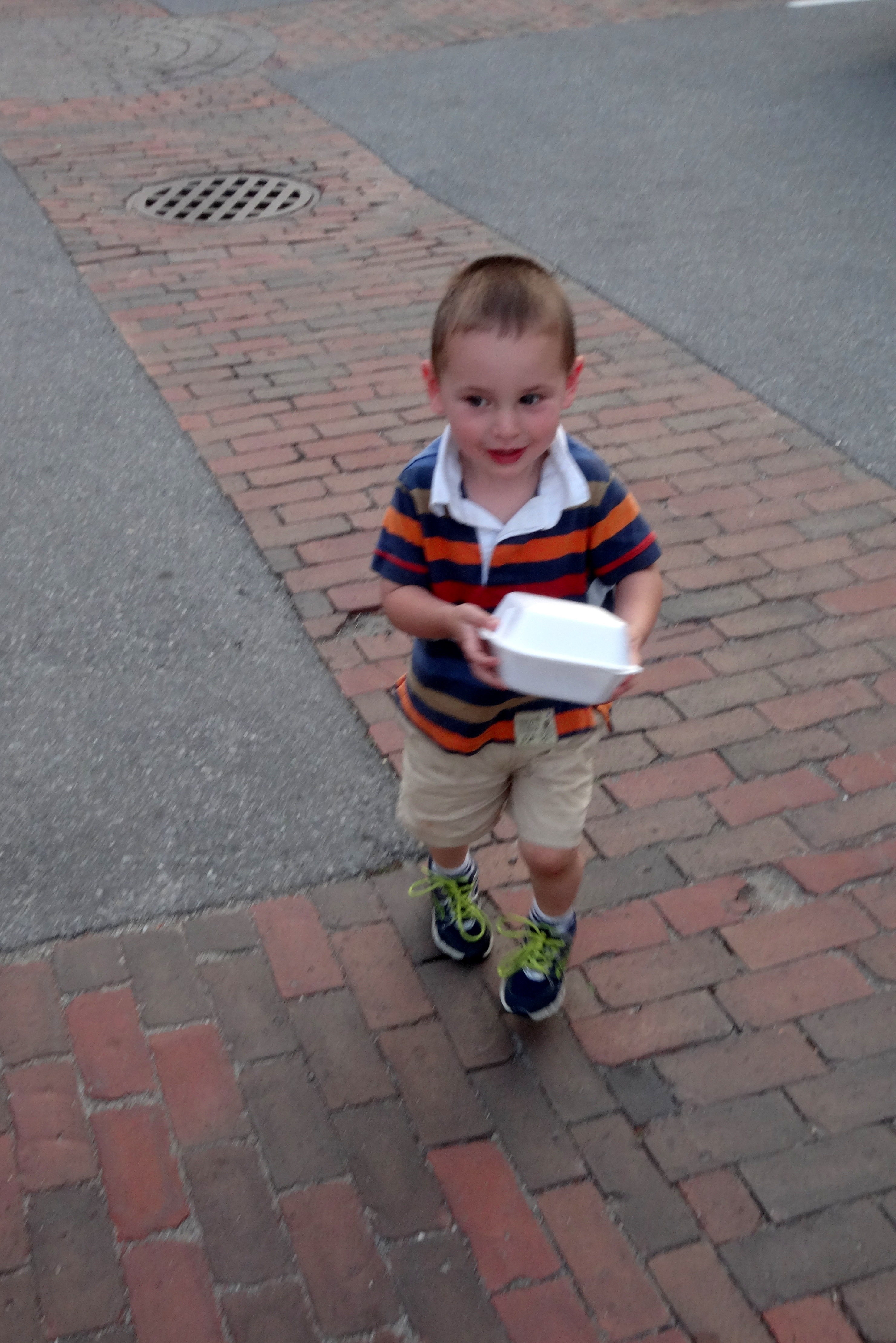 Holding Tight to His Grilled Cheese.JPG