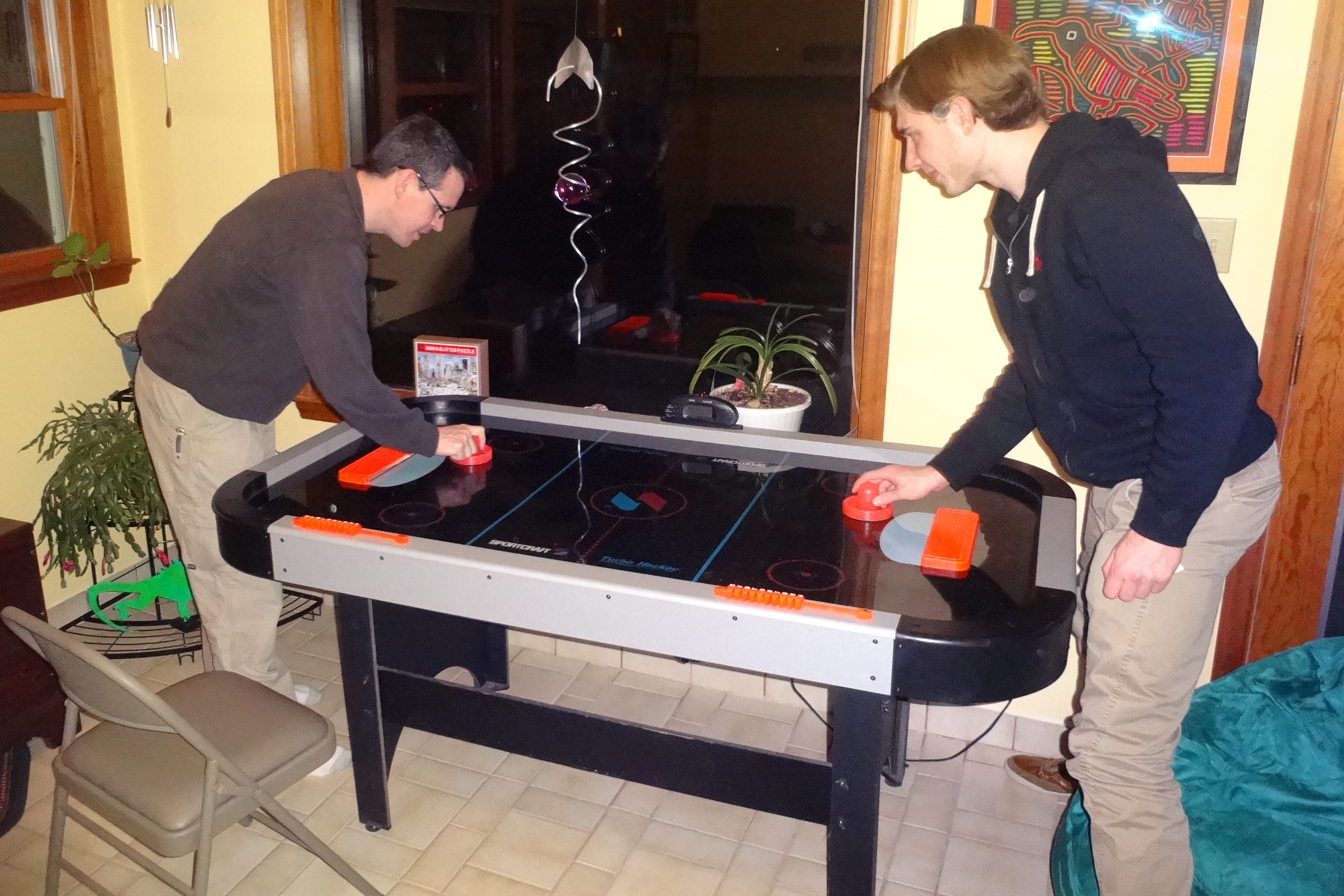 Sean and Sander Playing Air Hockey