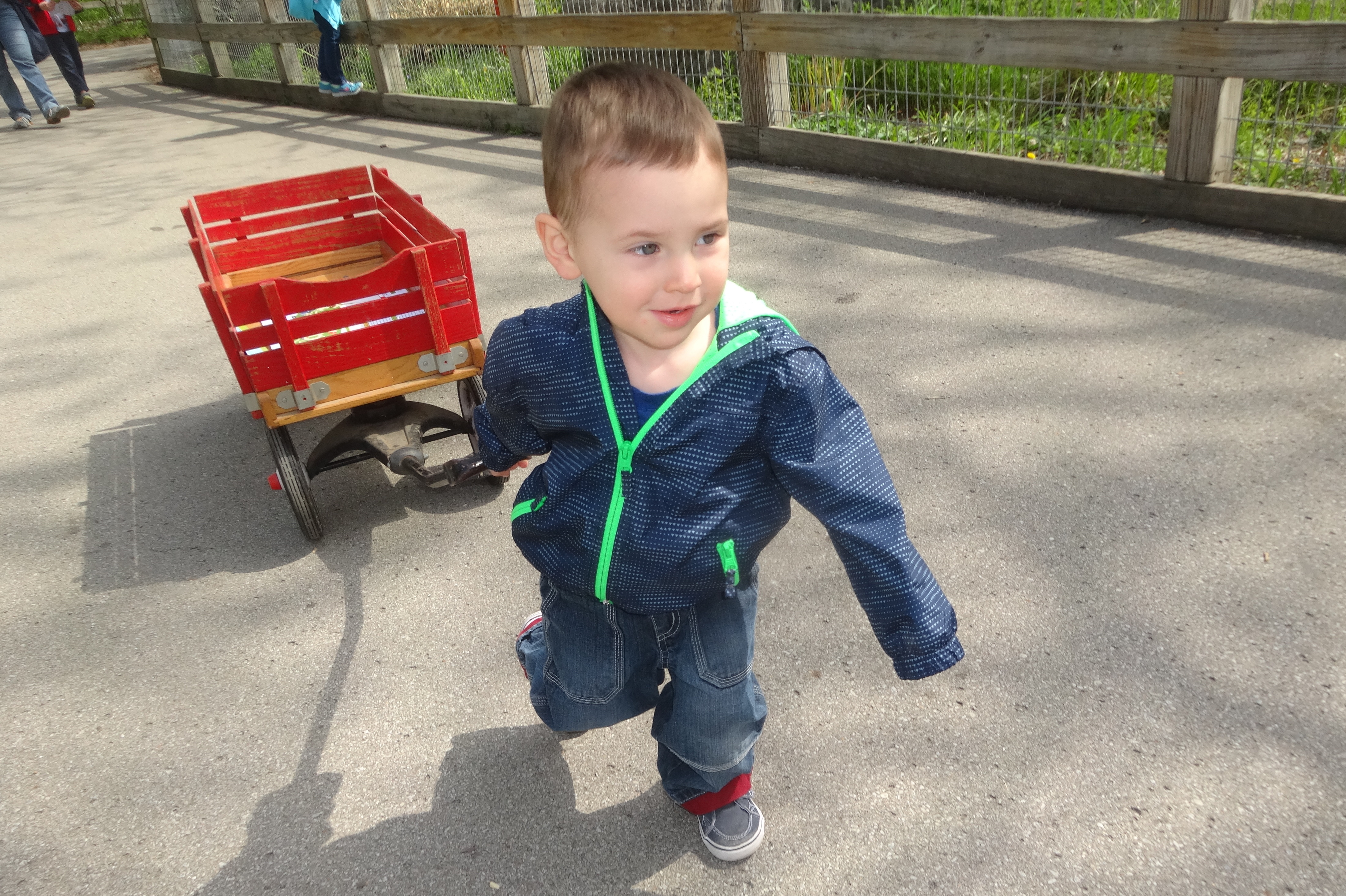 Deciding He Wants to Move the Wagon.JPG
