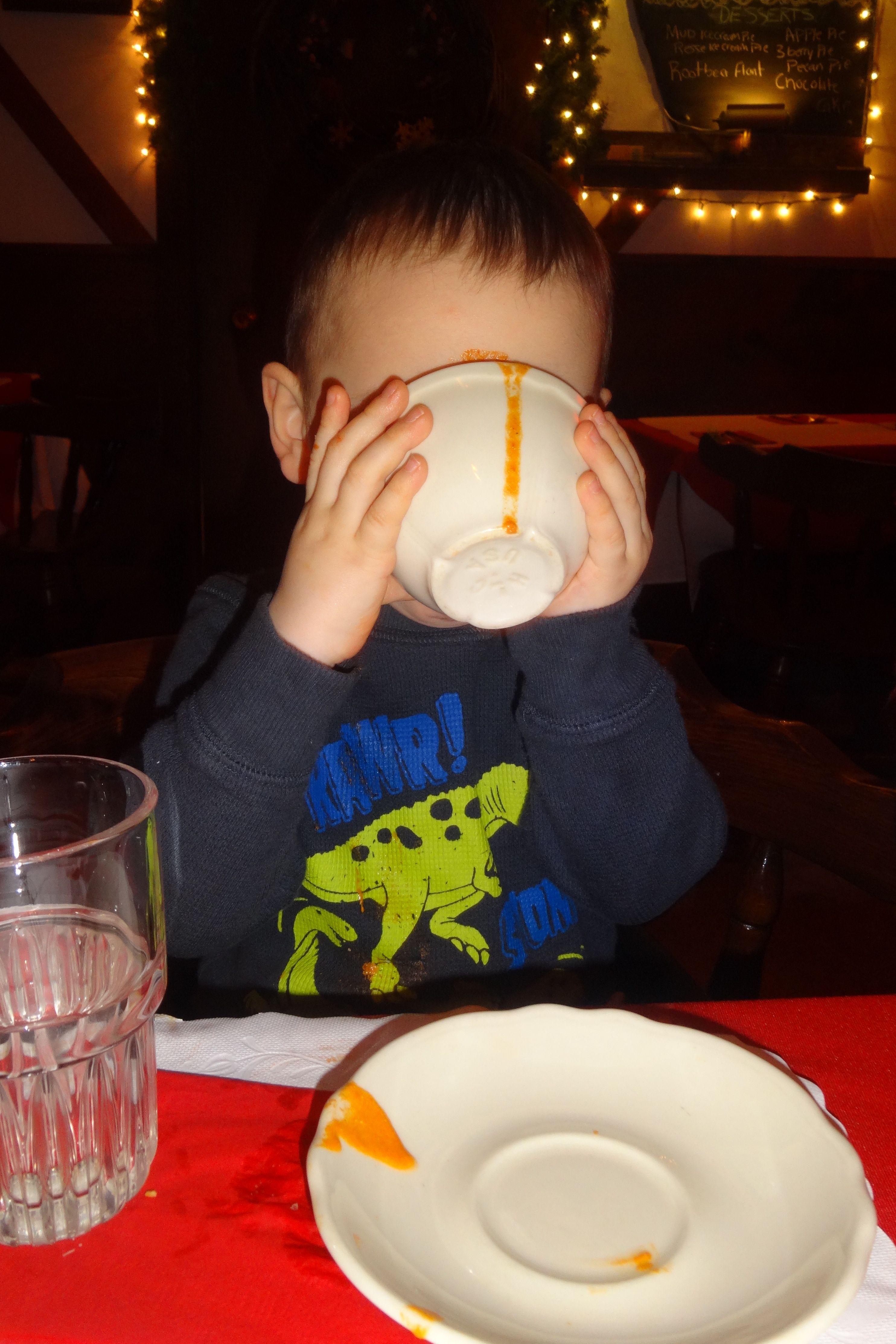 Eating Daddys Roasted Red Pepper and Gouda Soup.JPG
