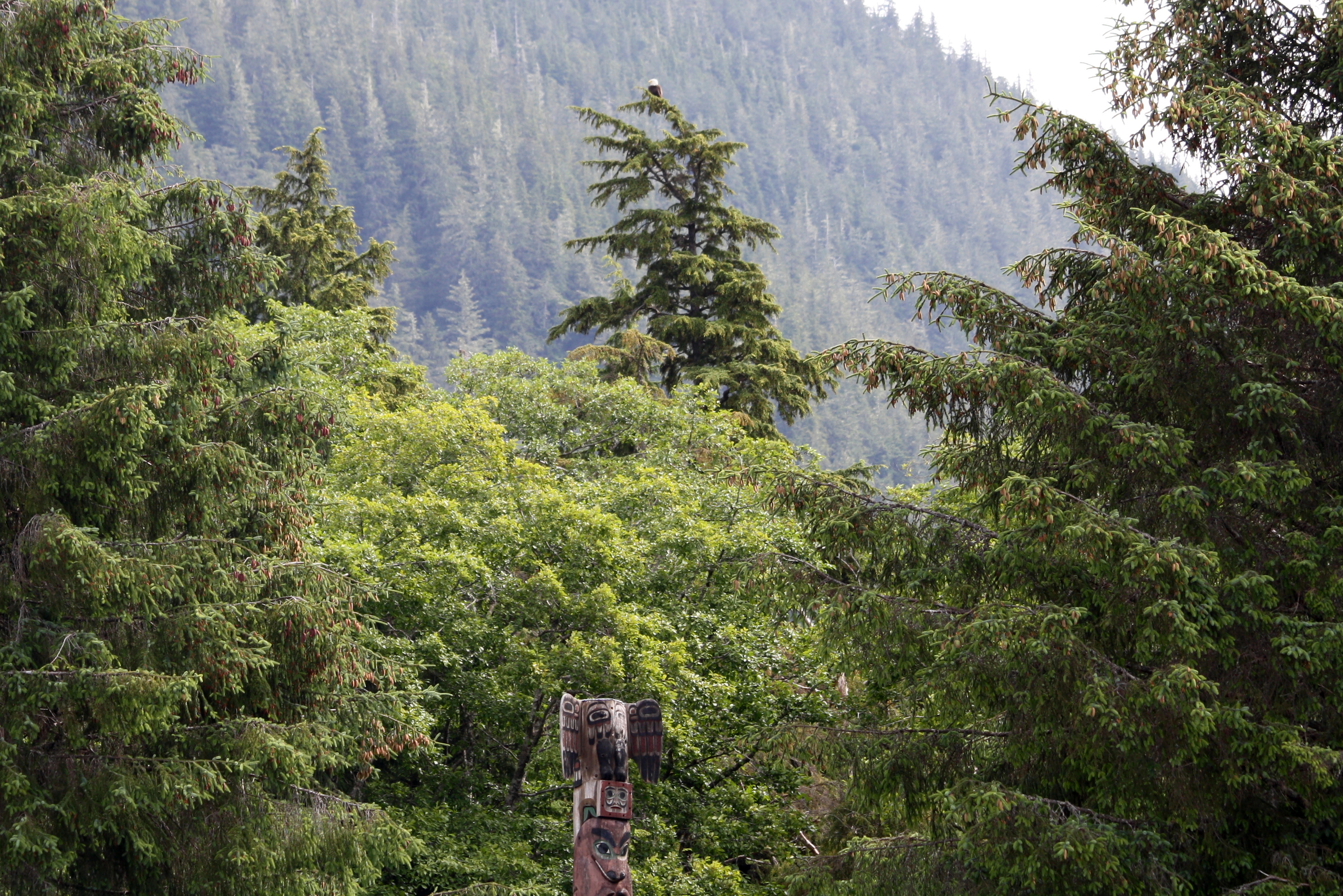 Speck of an Eagle Above the Totem Poles