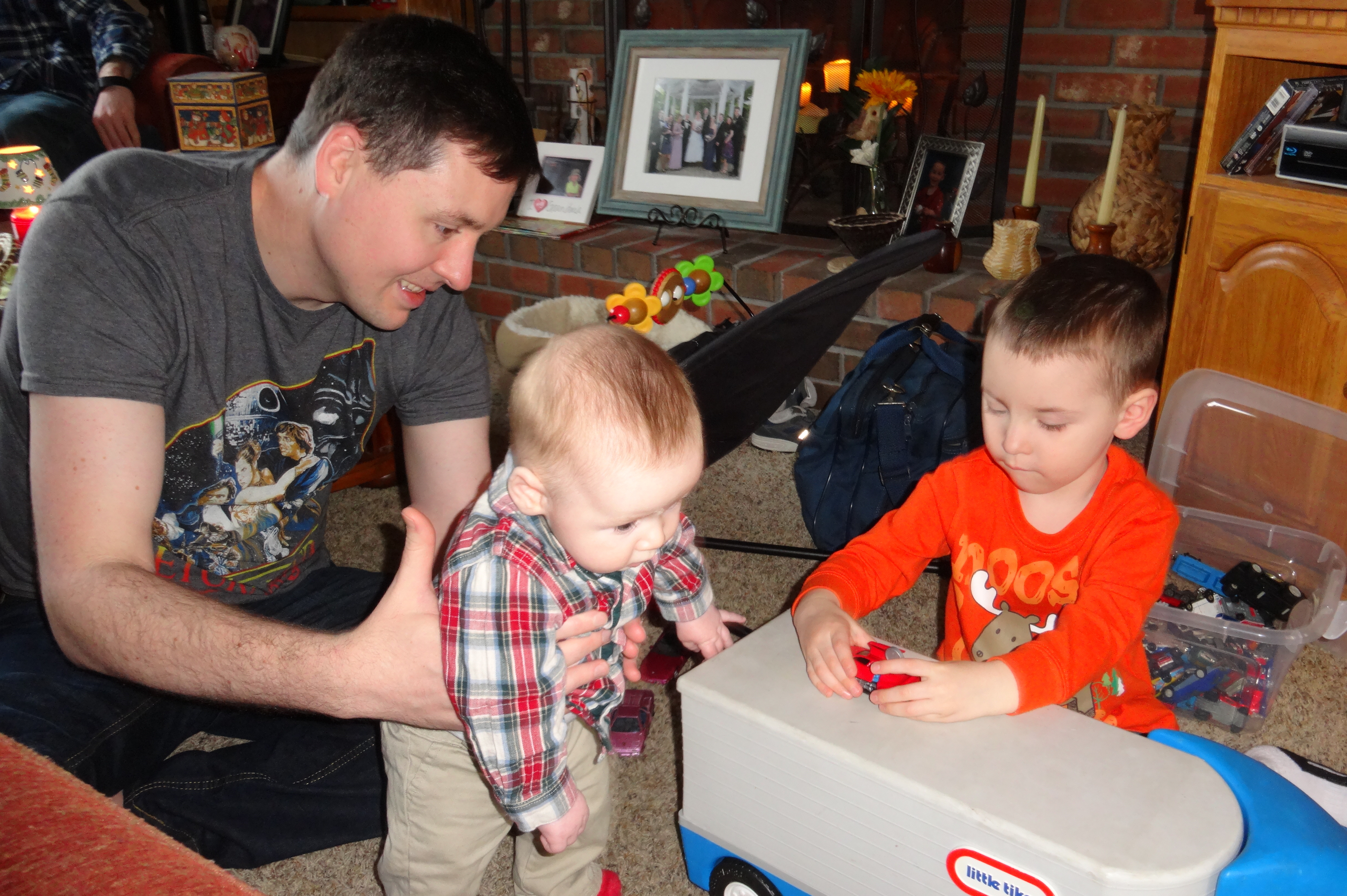 Isaac Is Not As Amused as Thomas With the Transforming Car.JPG