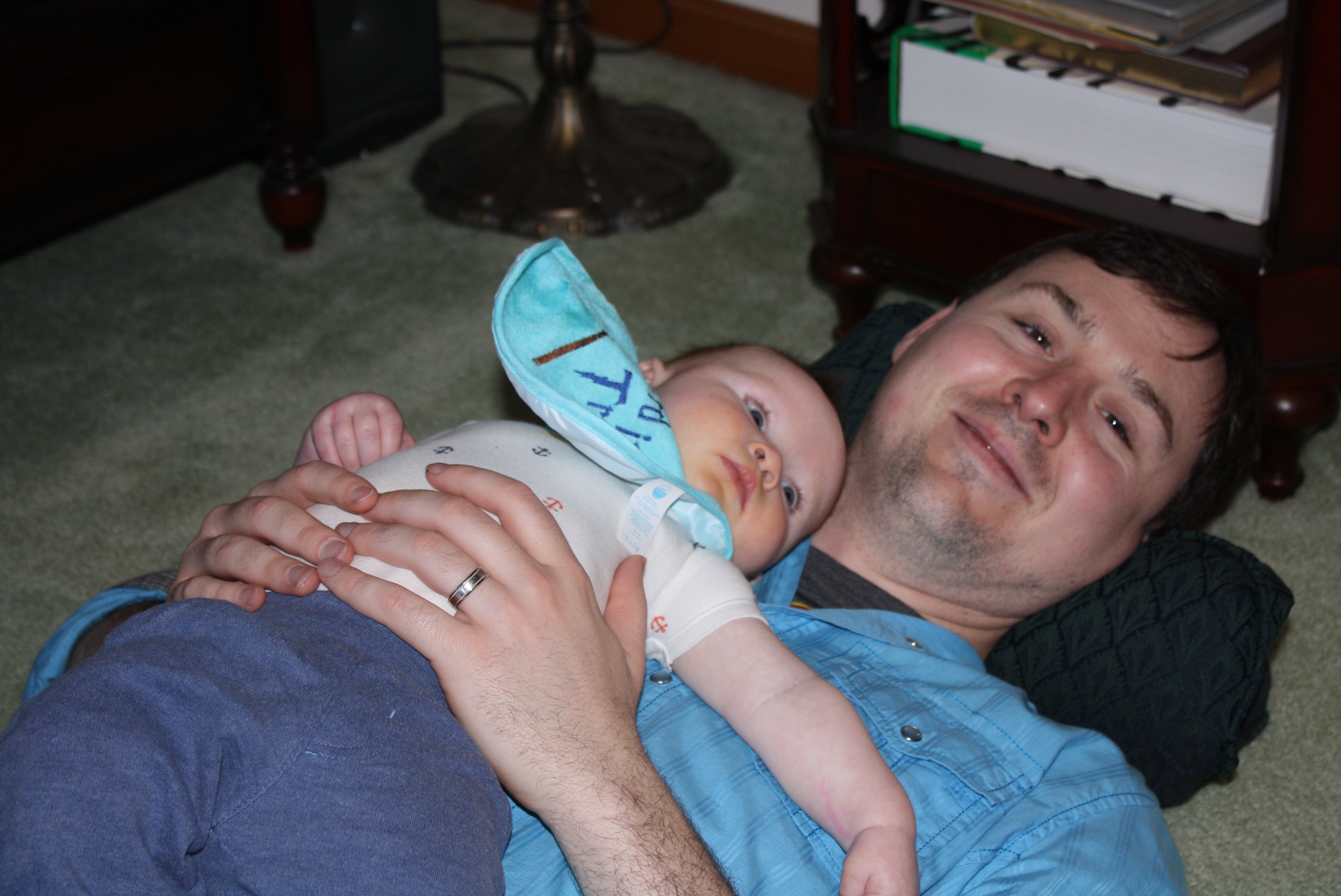 Snoozing On His Daddy.JPG