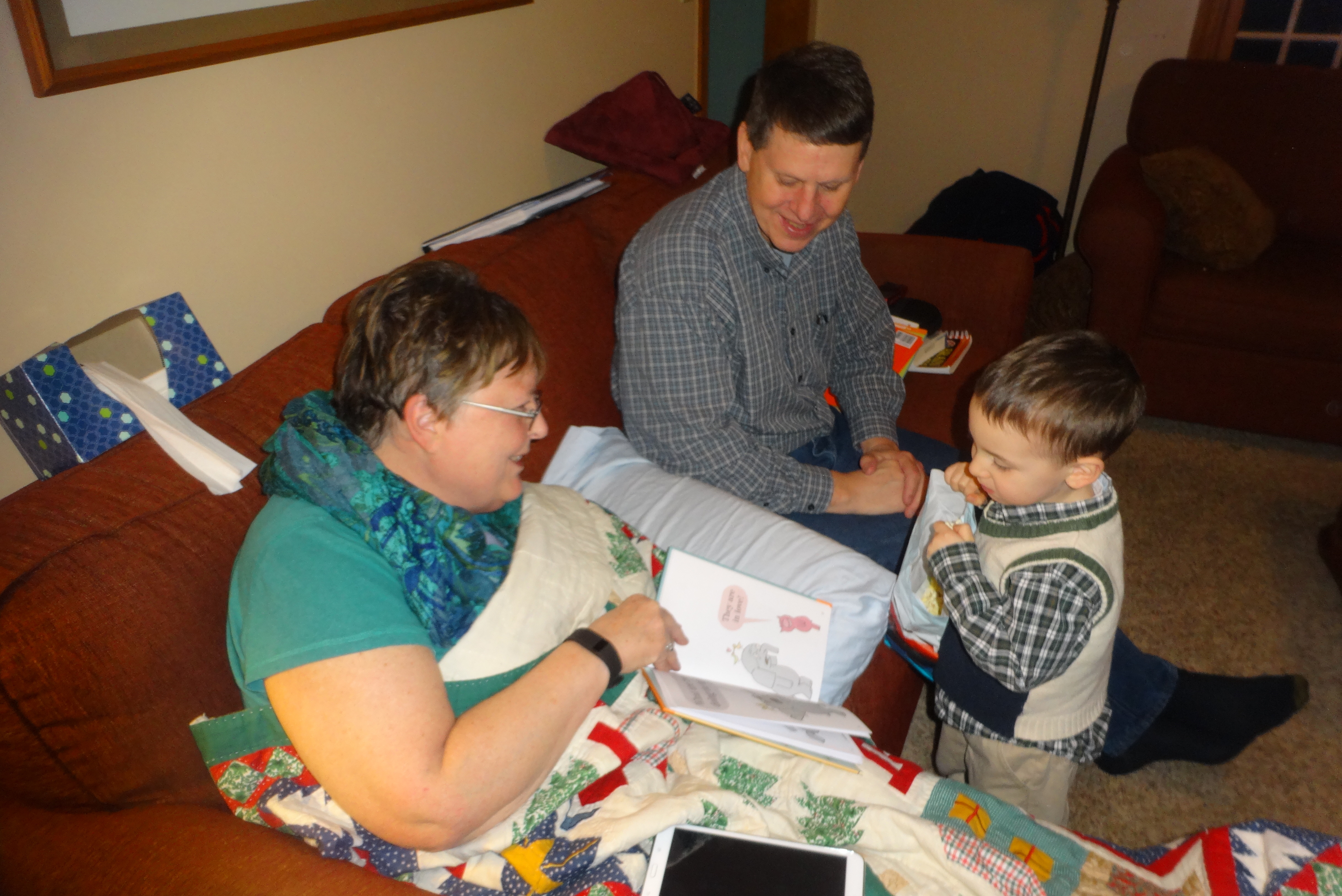 Reading Piggie and Elephant Book With His Grandparents.JPG