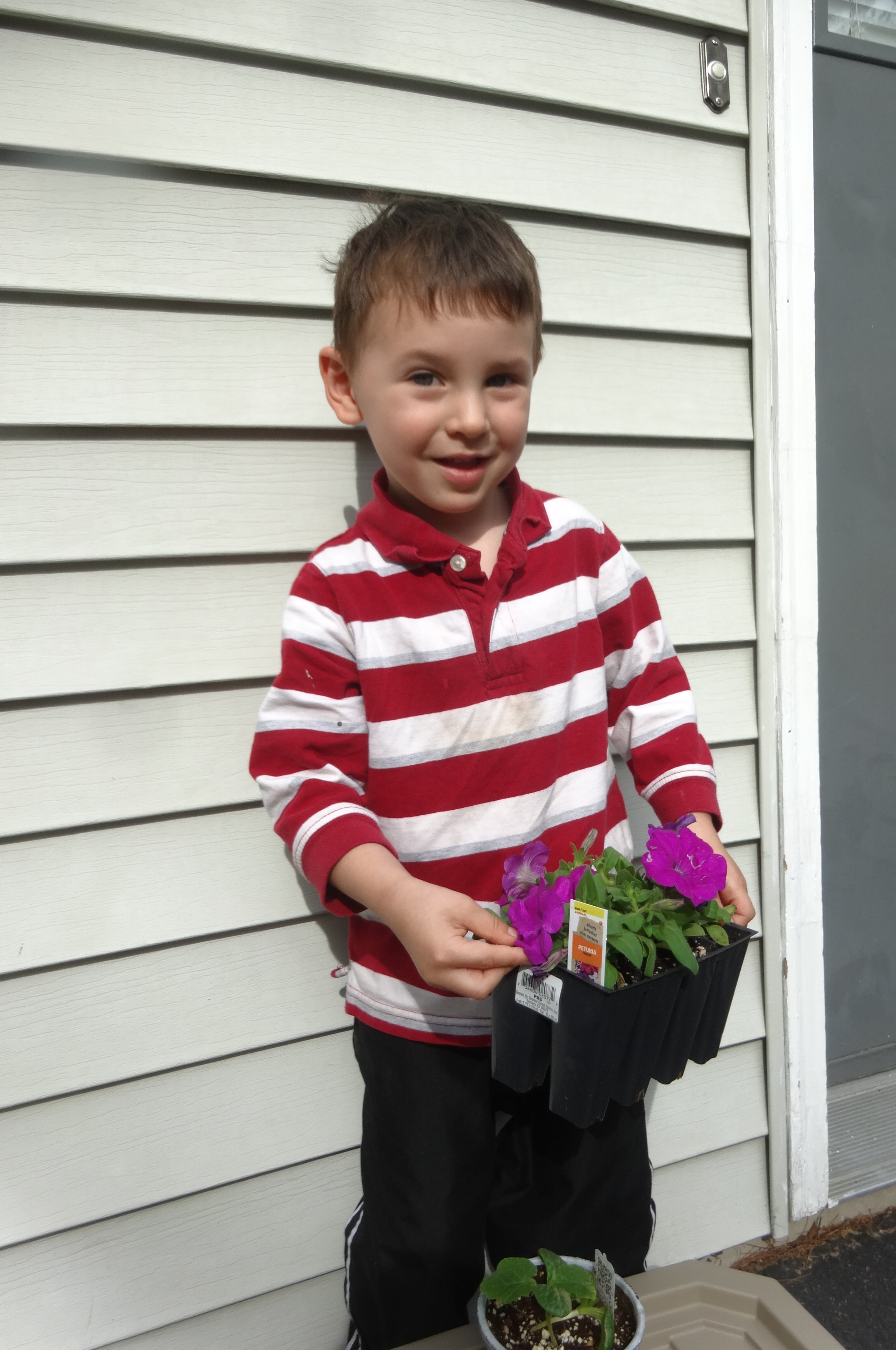 Carrying His New Petunias.JPG