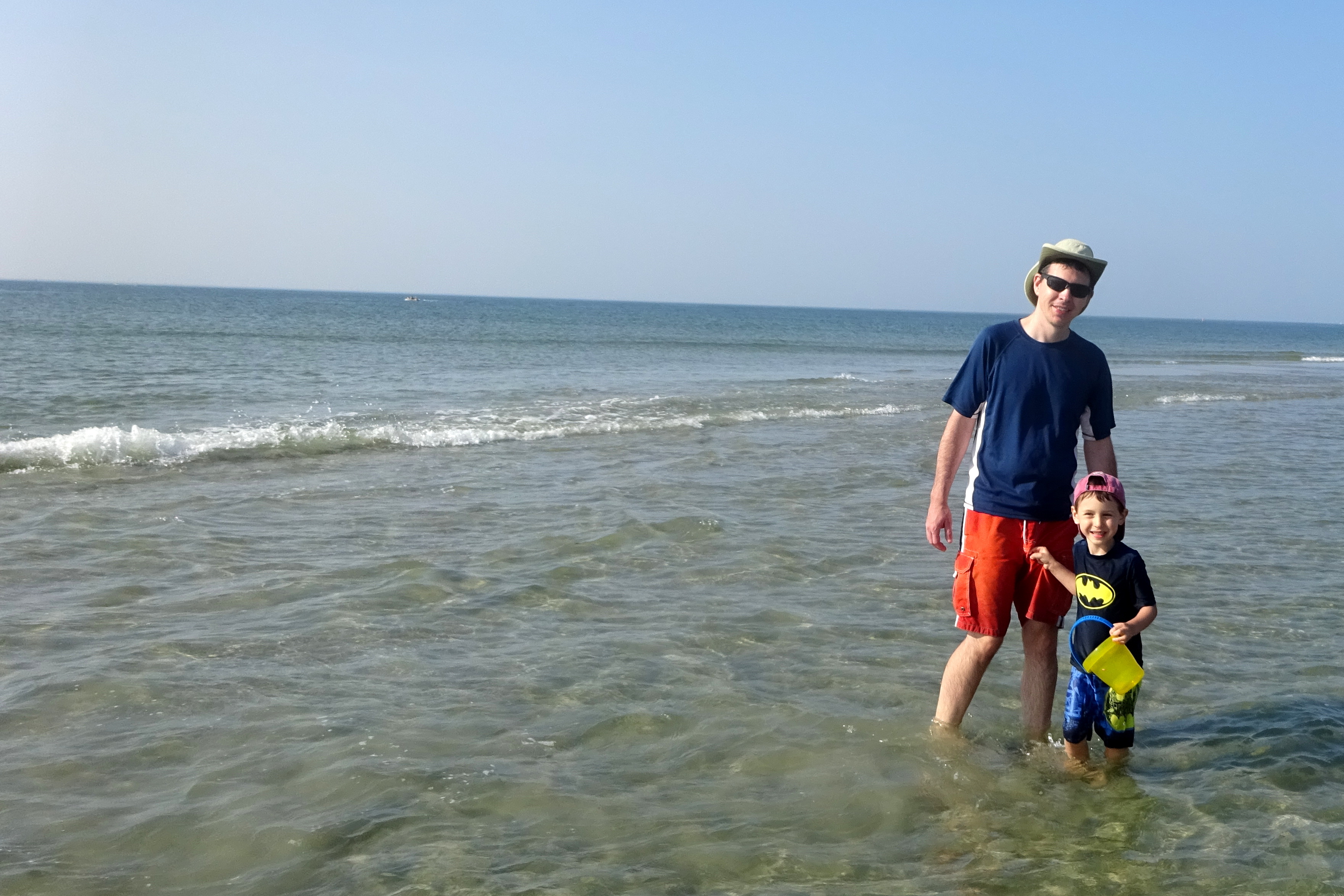Thomas and Daddy Just Off the Sandbar.JPG
