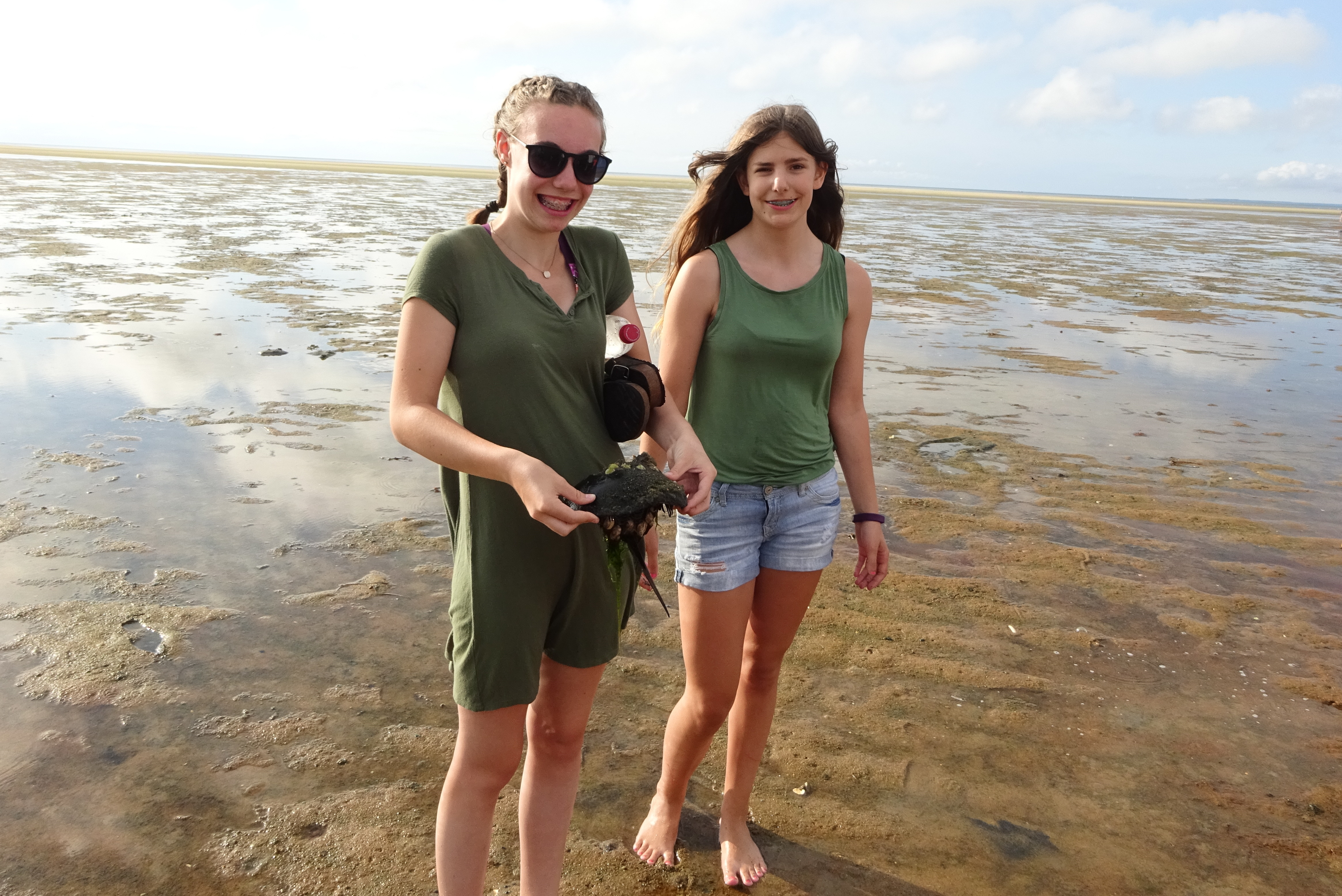 Lexi and Liz and the Horseshoe Crab.JPG