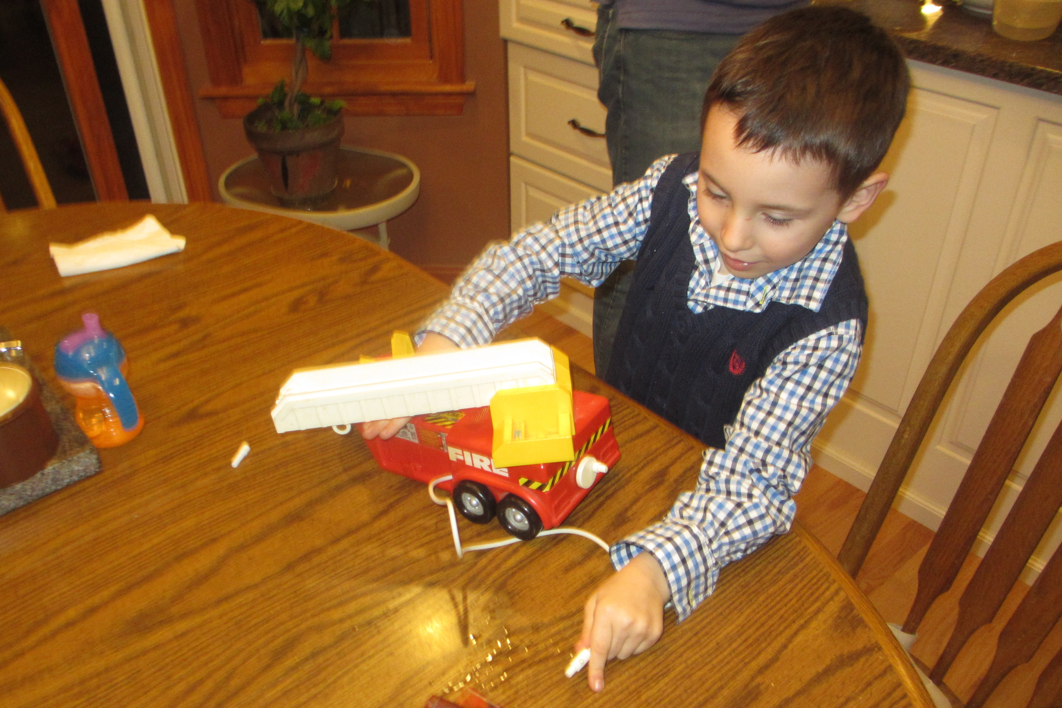 Washing the Table with the Fire Truck.JPG