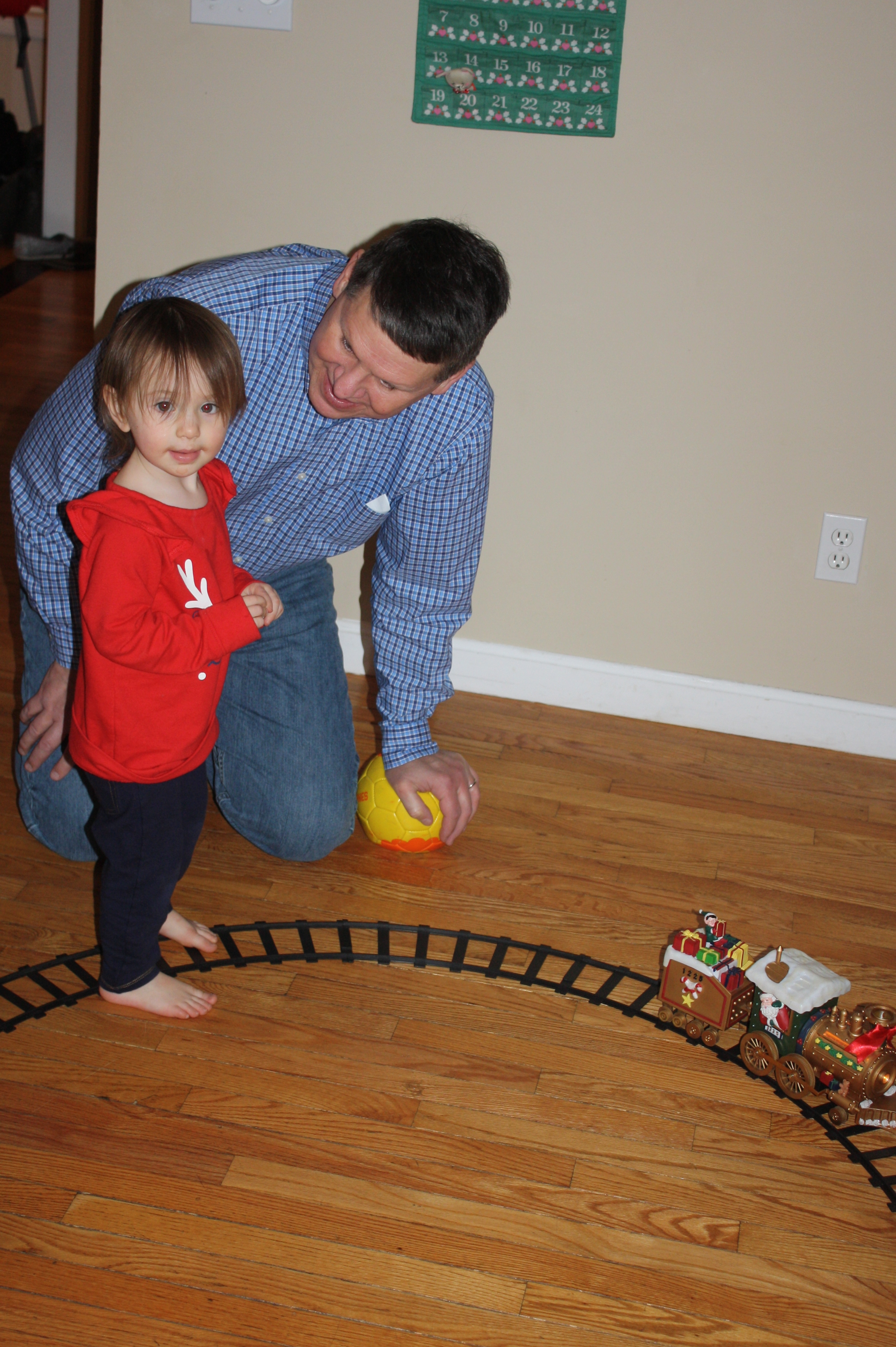 Showing Grandpa the Christmas Choo Choo.JPG