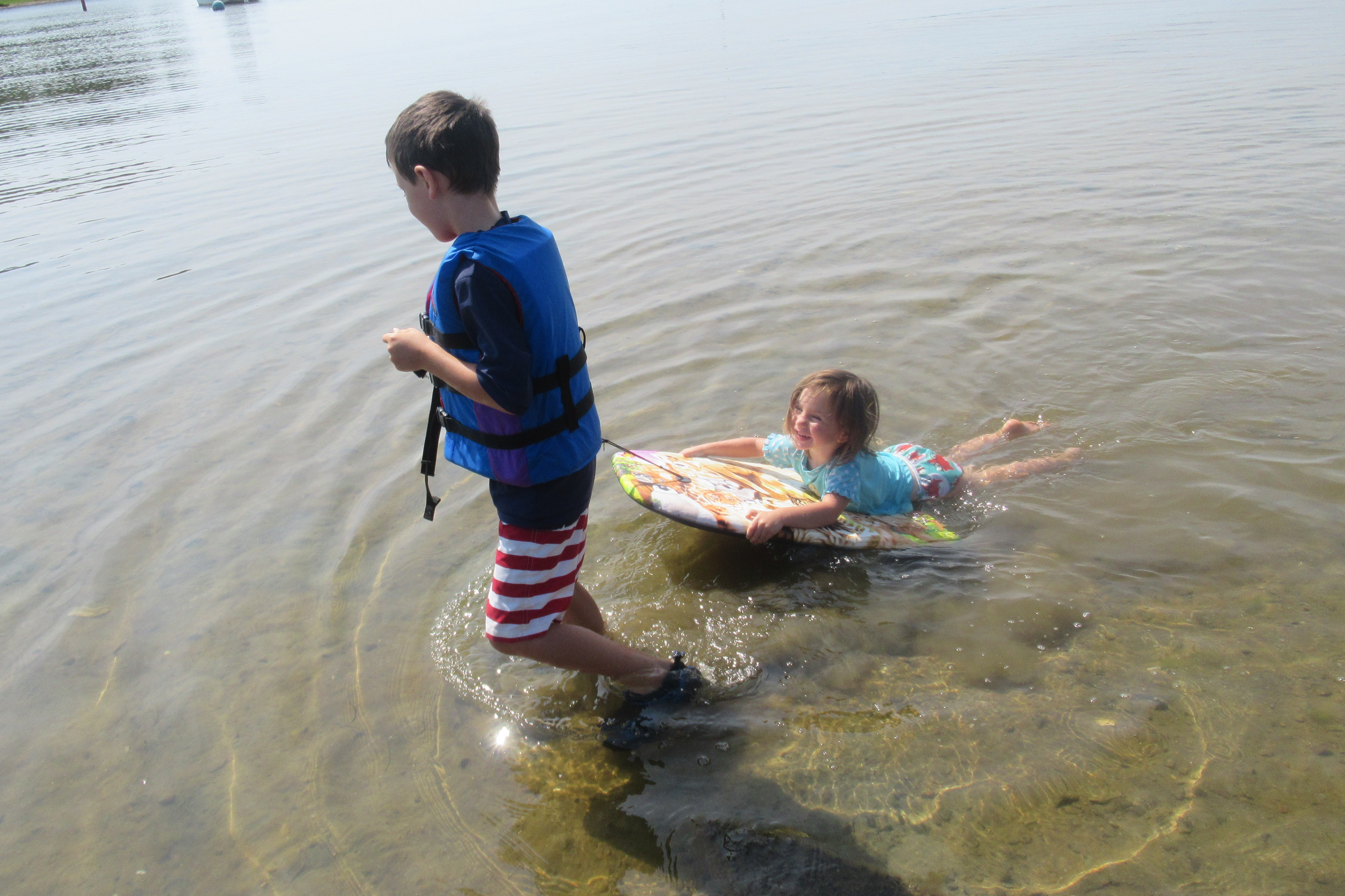 Towing Sissy on the Boogie Board