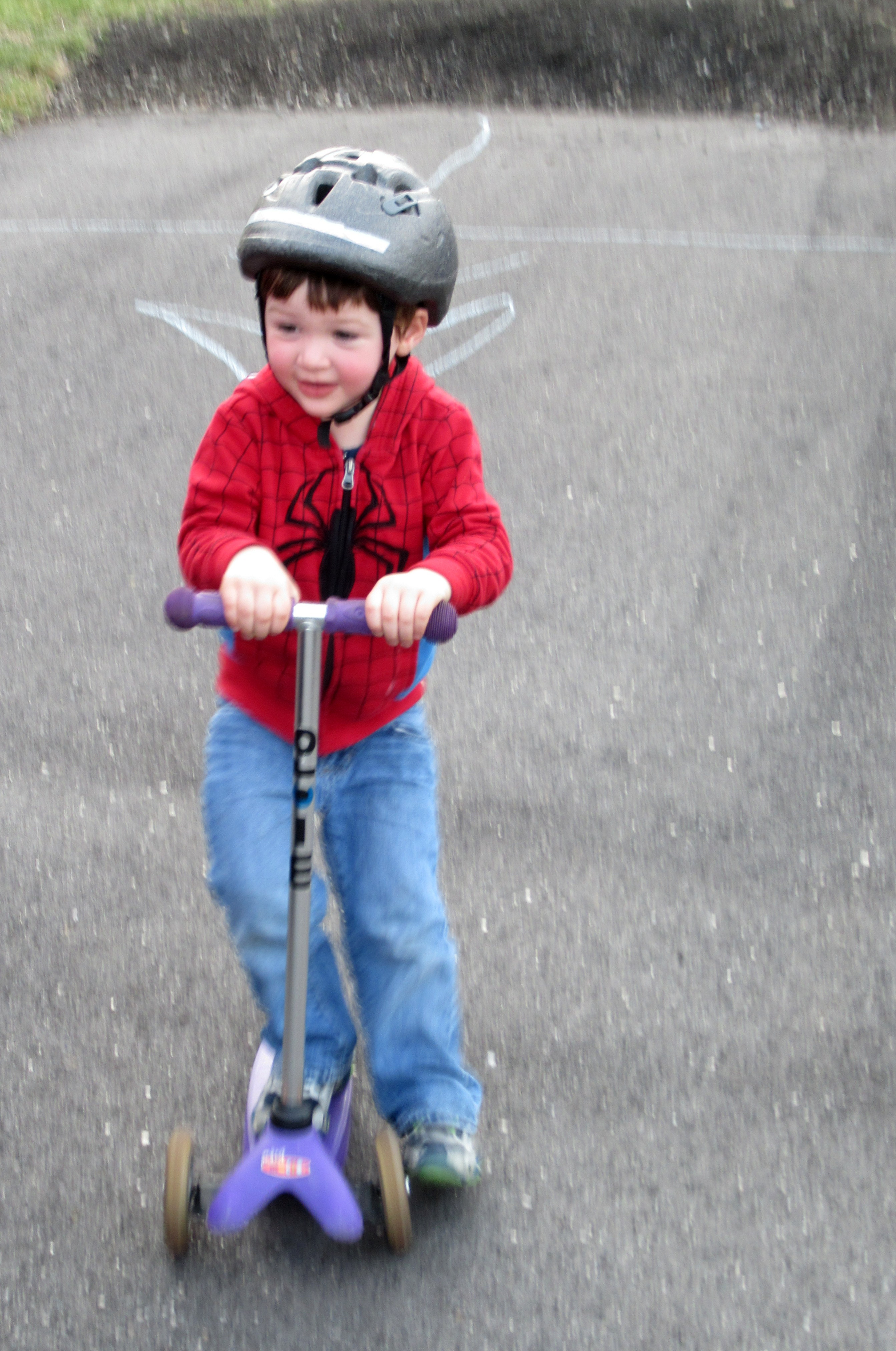 Isaac Mastering His New Purple Scooter