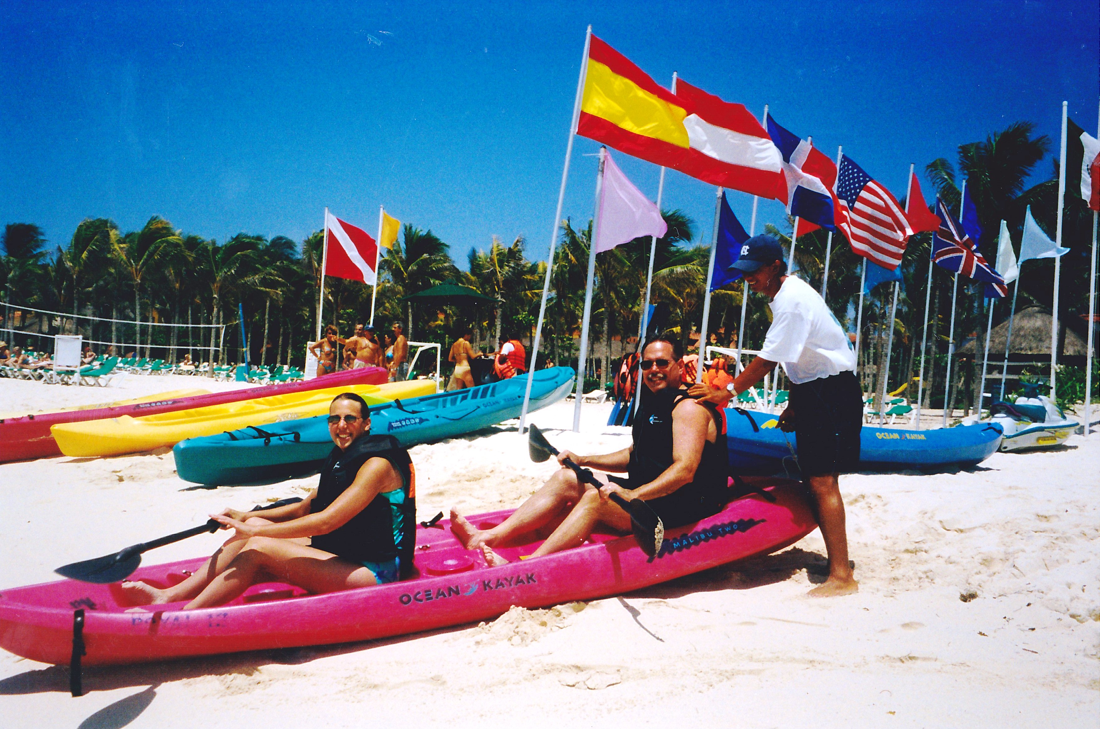 2001 Beth and Dad read to kayak