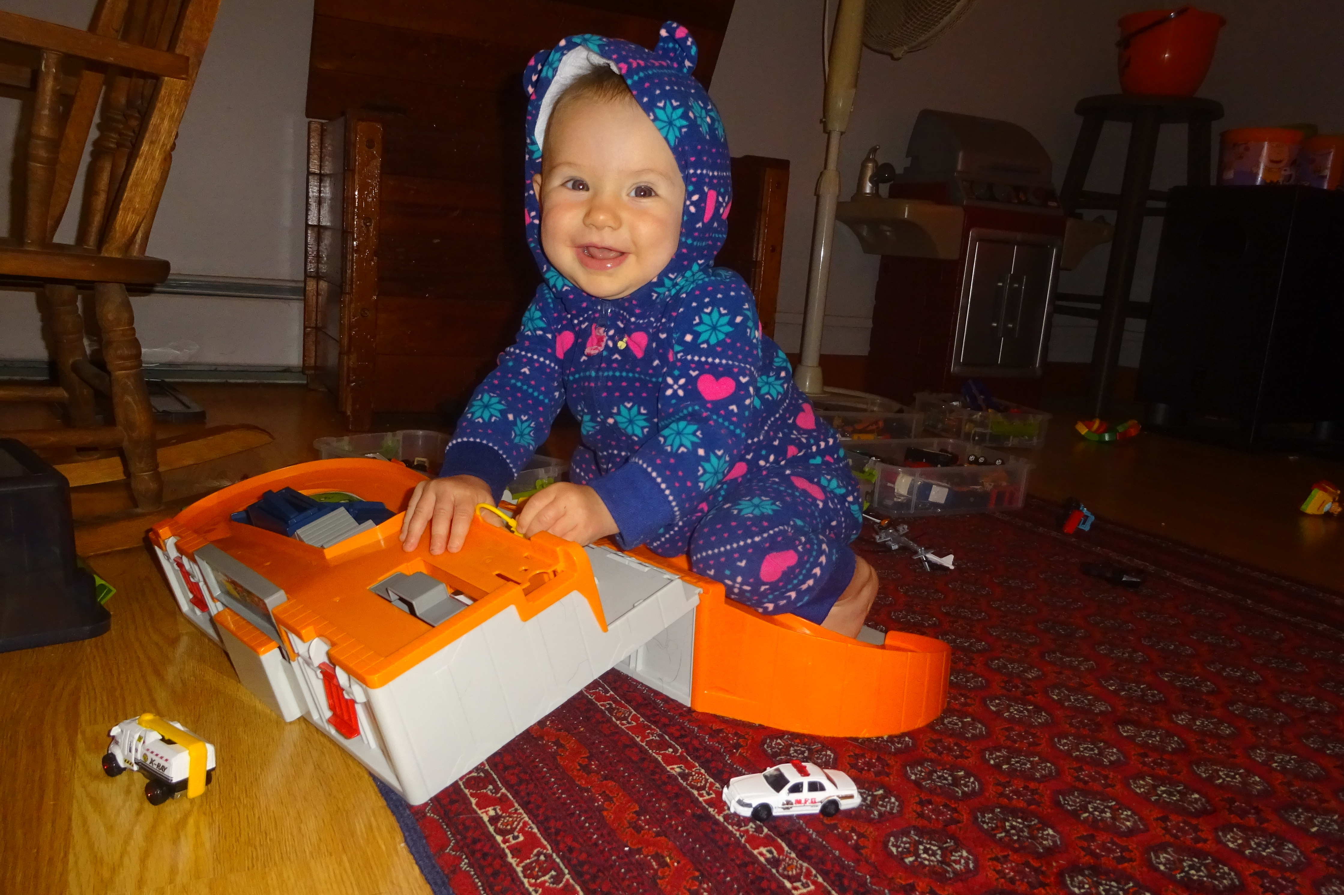 Bear Taking Out Matchbox Town.JPG