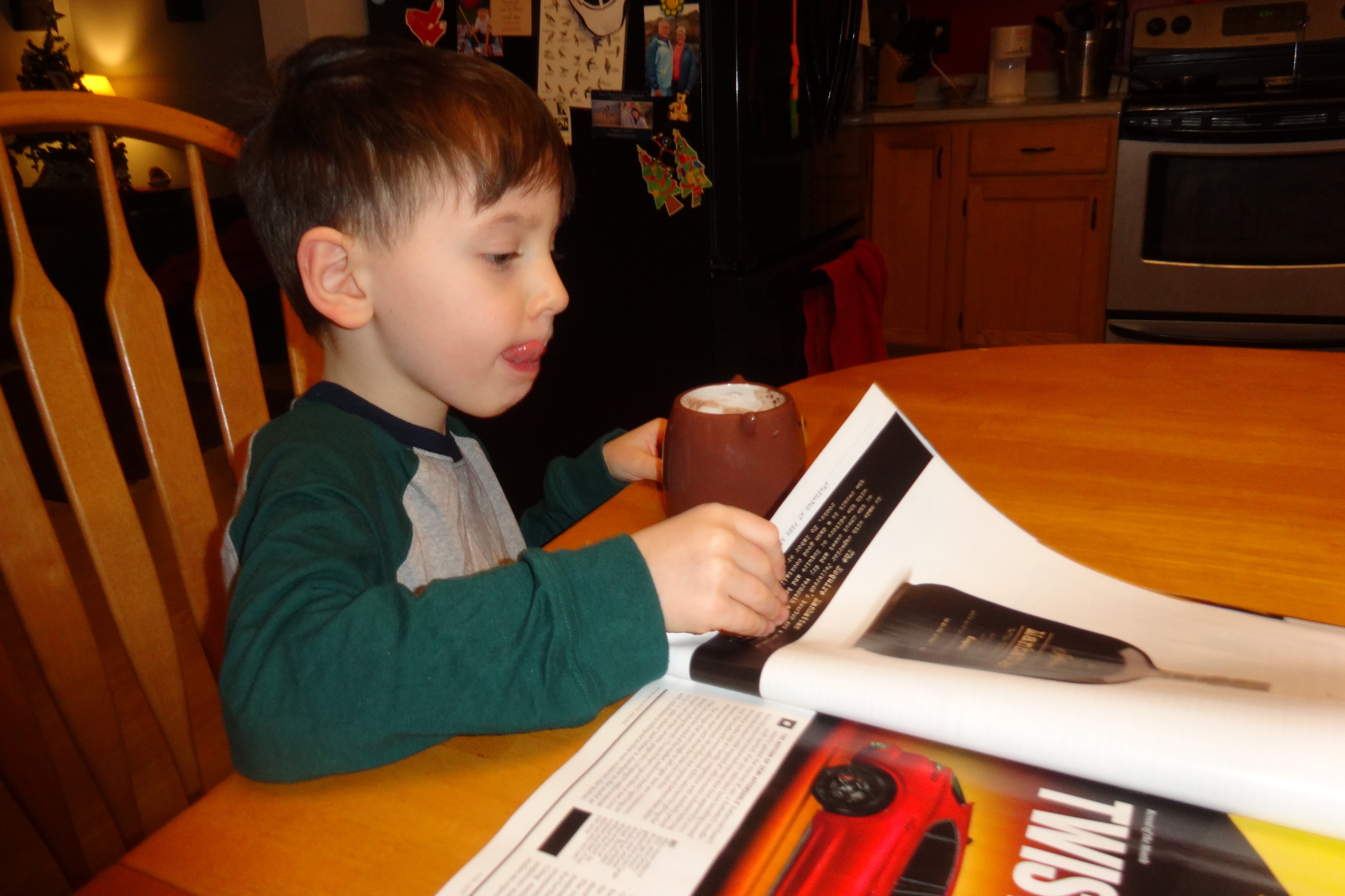 Reading a Magazine Drinking Cocoa.JPG