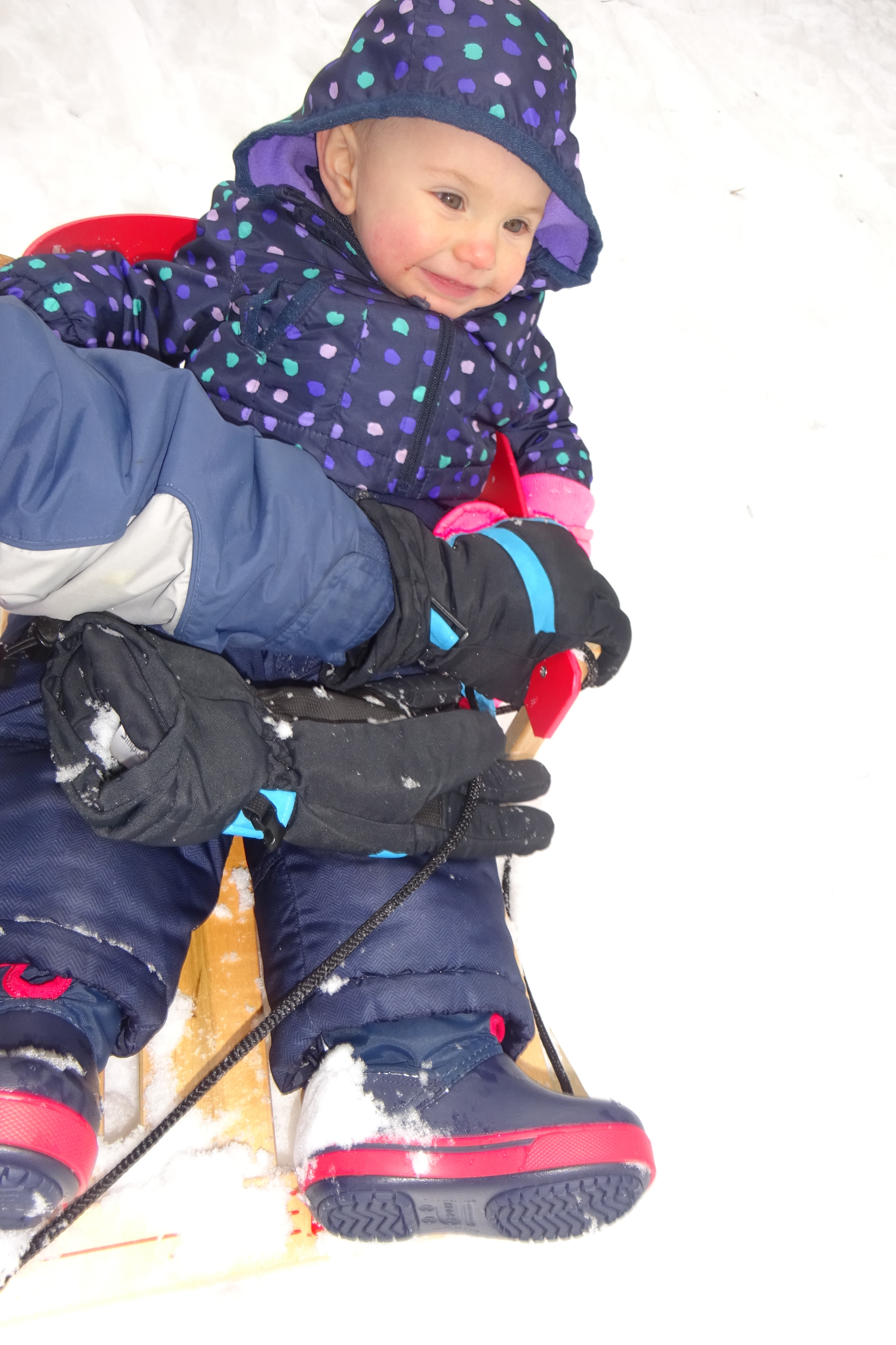 Happily Sledding With a Mommy Seat Belt.JPG
