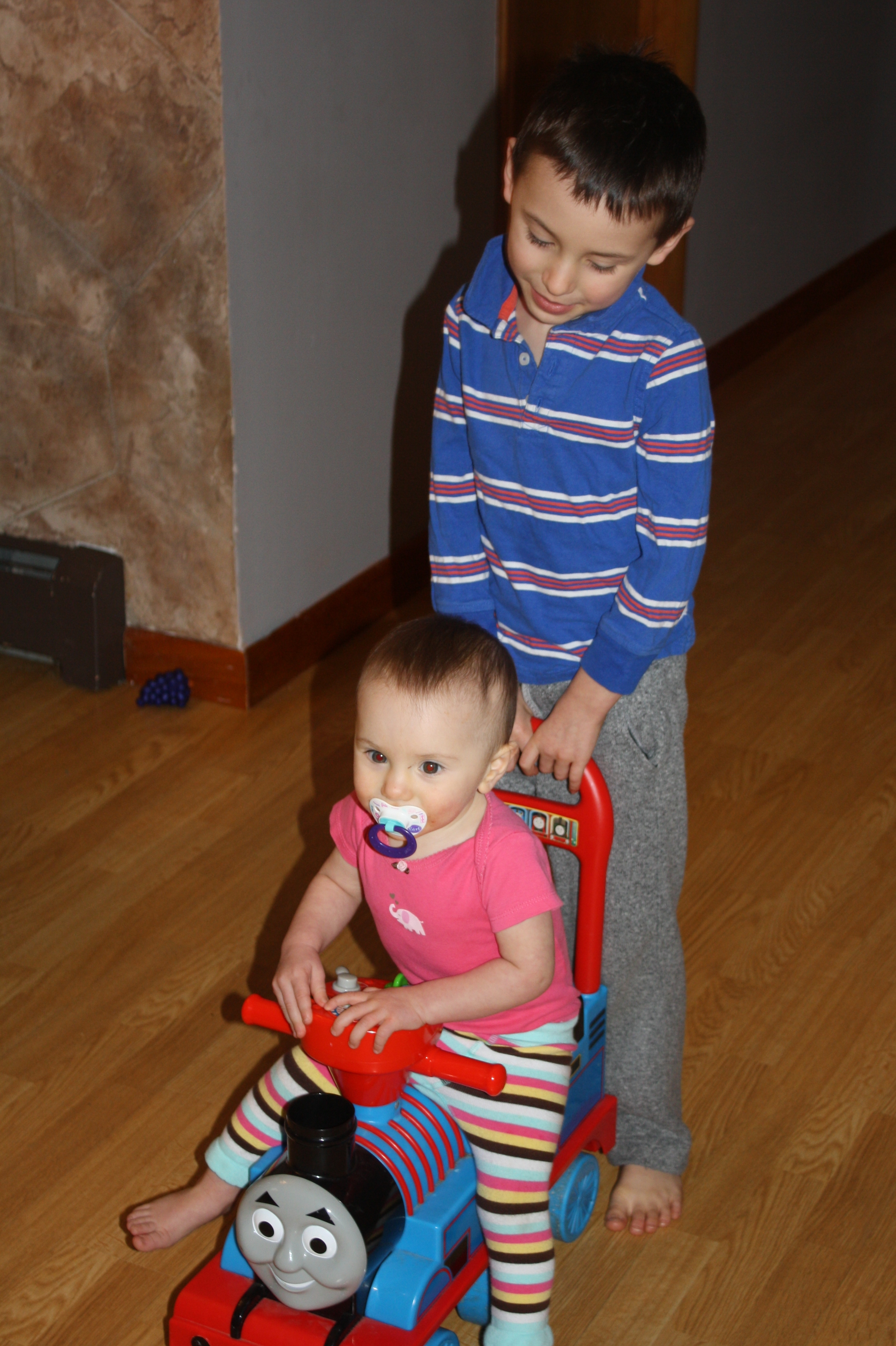 Very Carefully Pushign HIs Sister Around.JPG