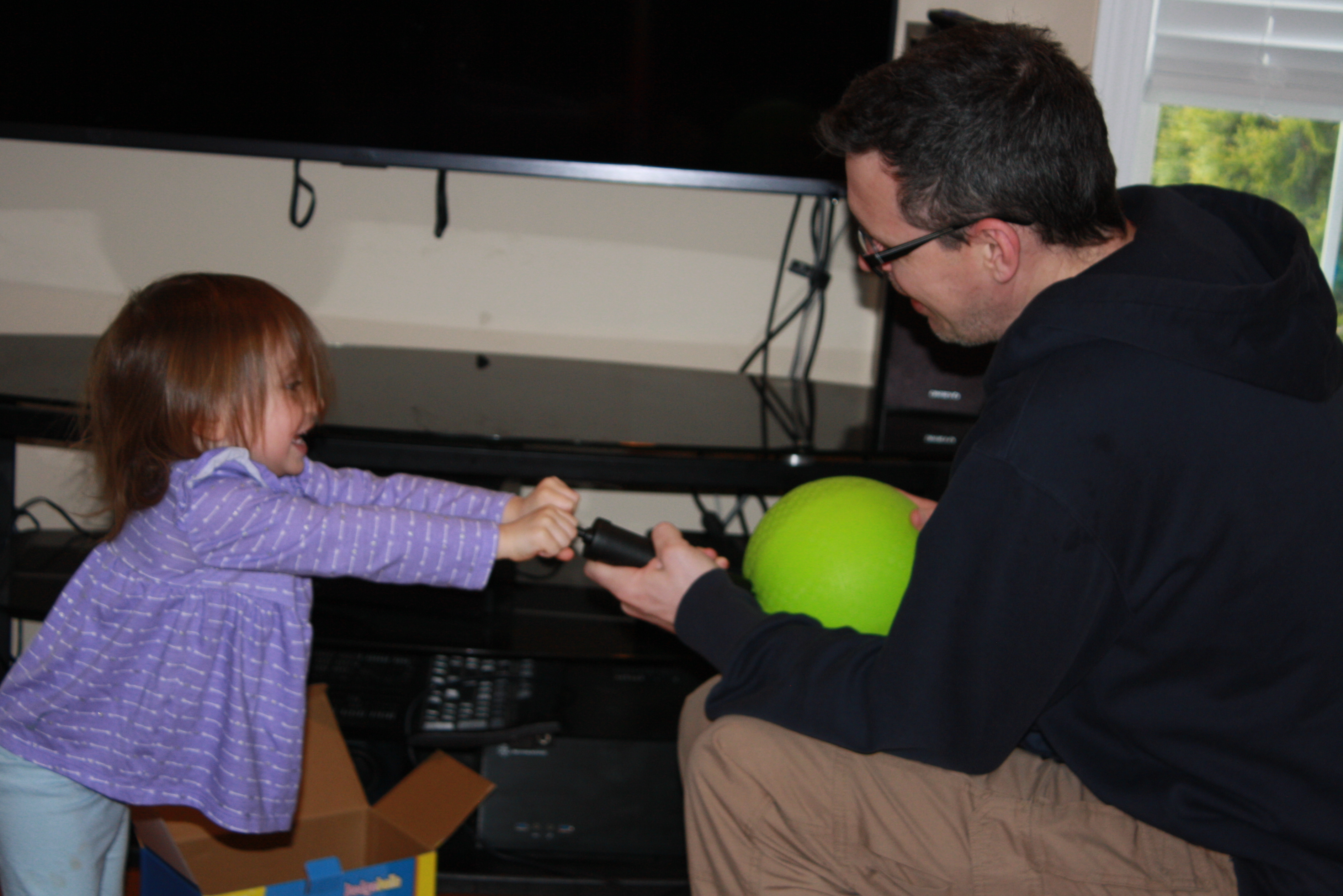 Excitedly Pumping Up Her new Kickball.JPG