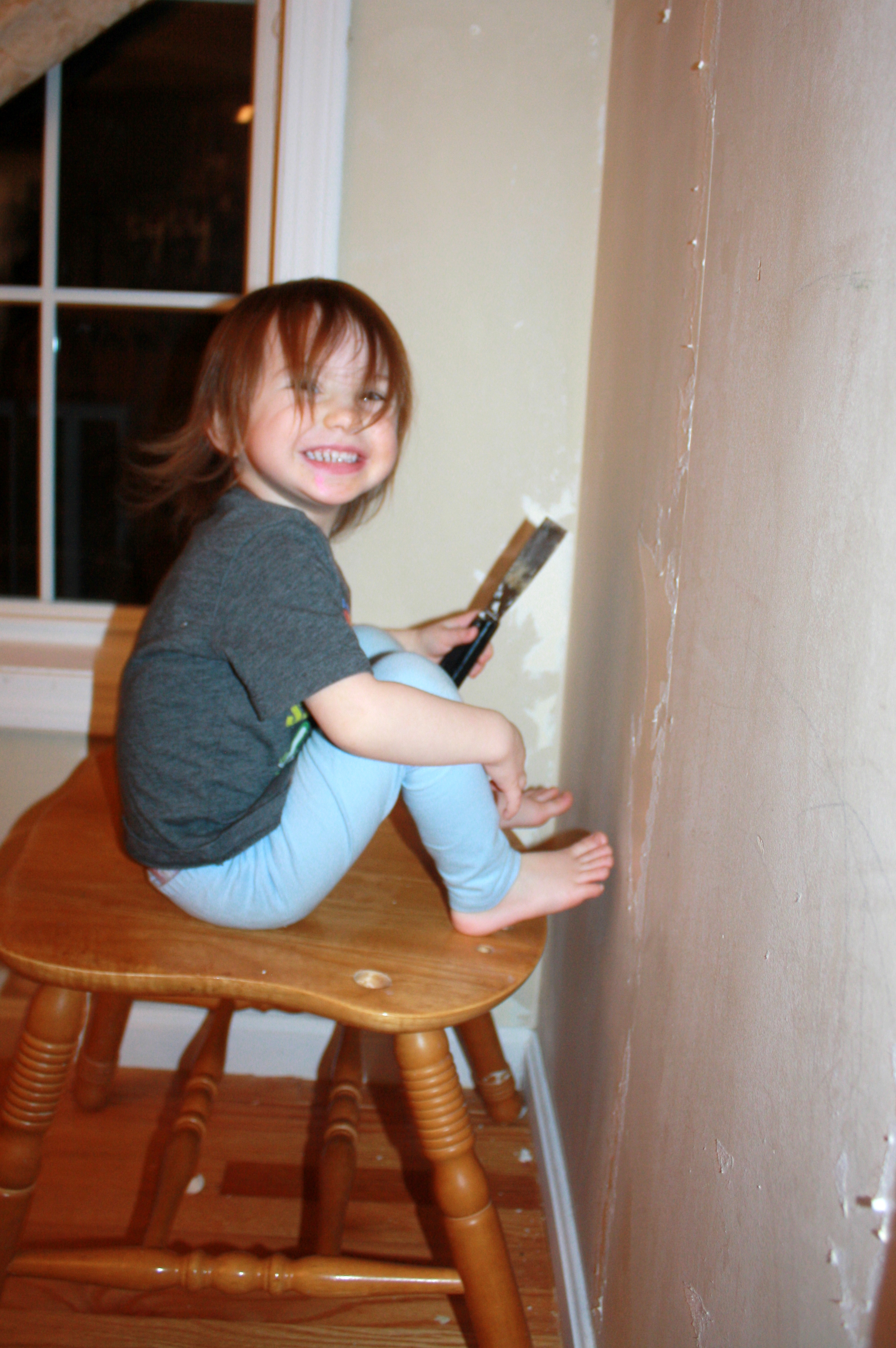Happy on Her Stool to Scrape.JPG