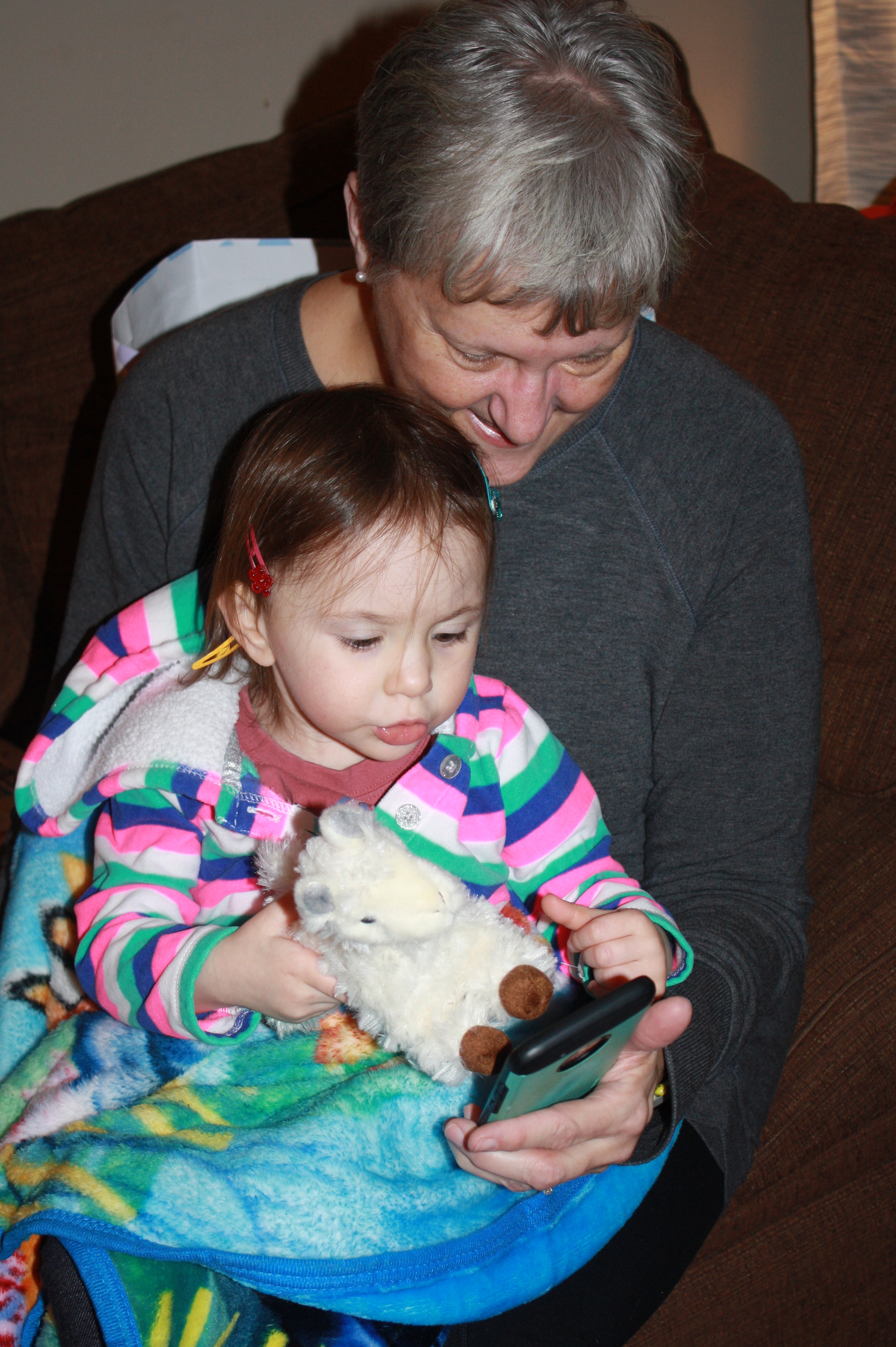 Sharing With Papa Her Presents.JPG