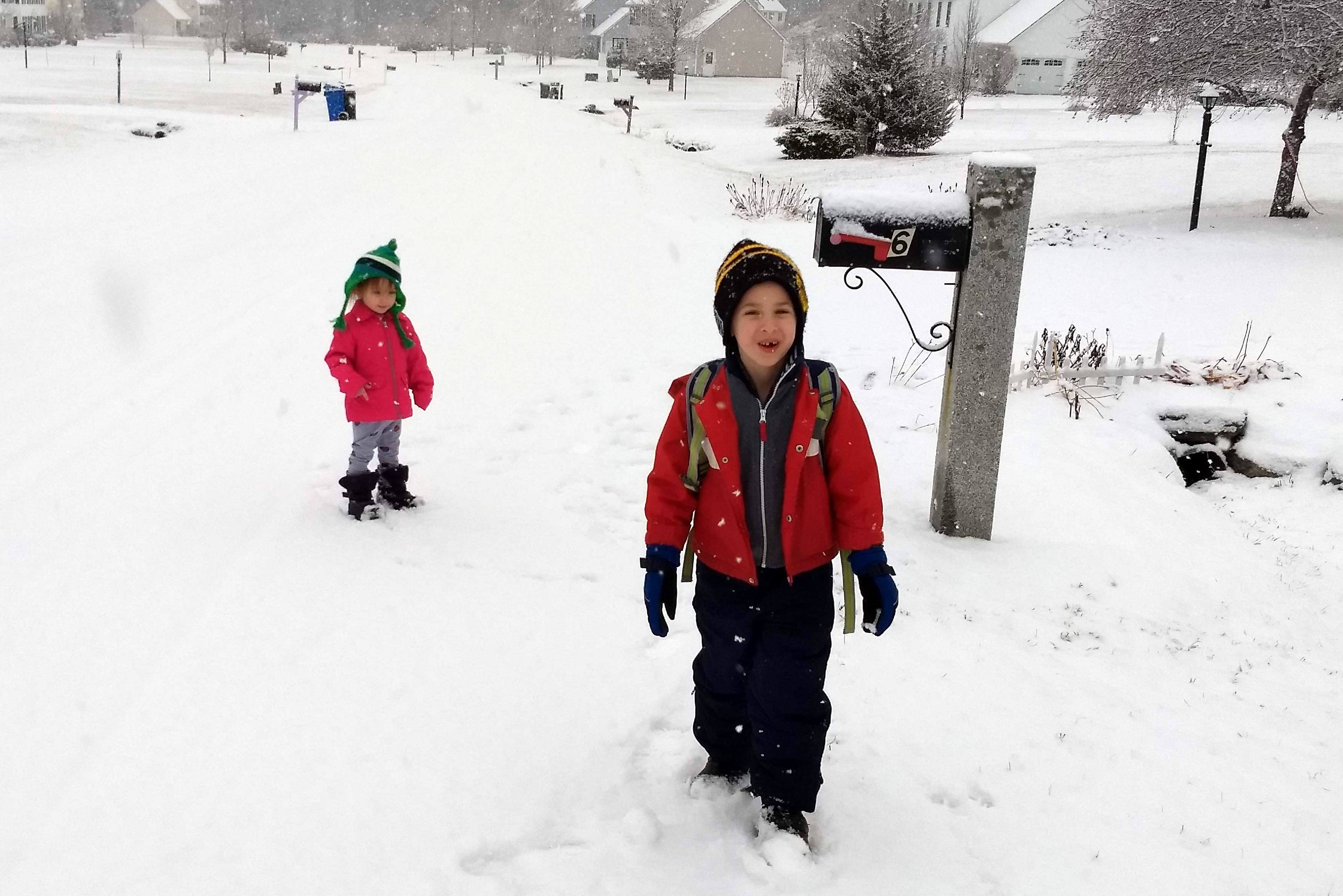 To the Bus Stop in the Snow