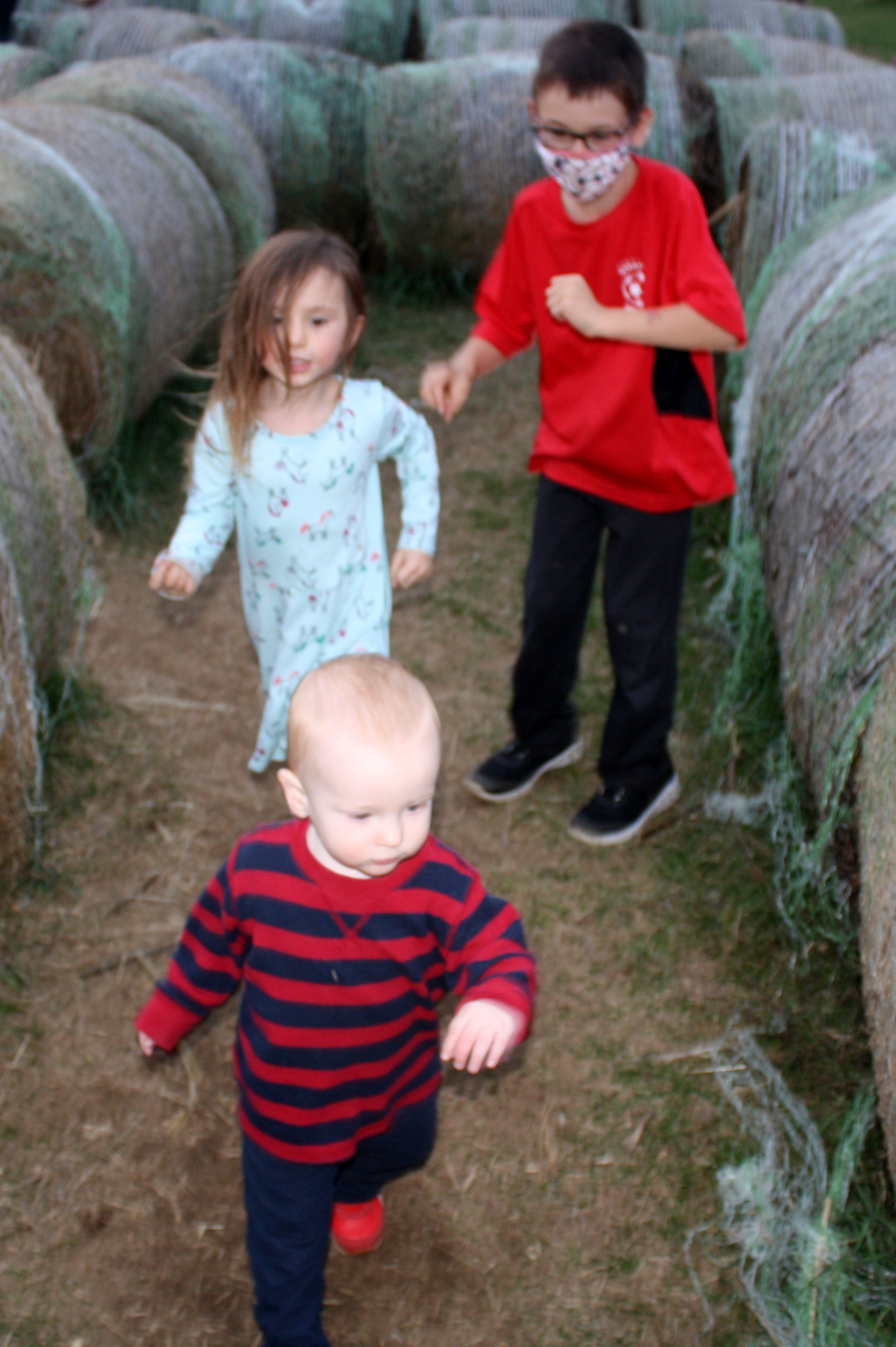 Cousins Marching Through Hay Bales.JPG