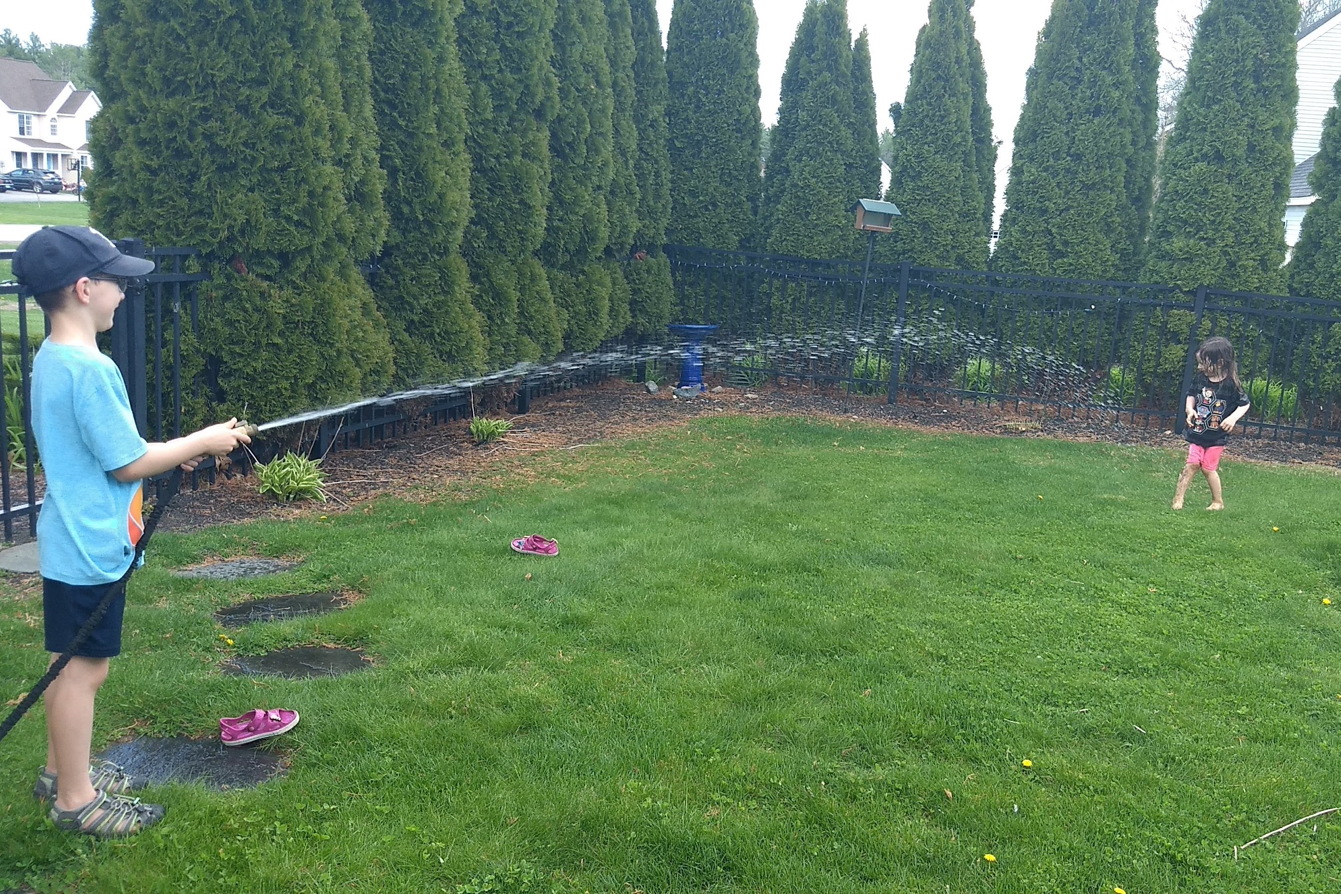Hosing Off the Marsh From His Sister
