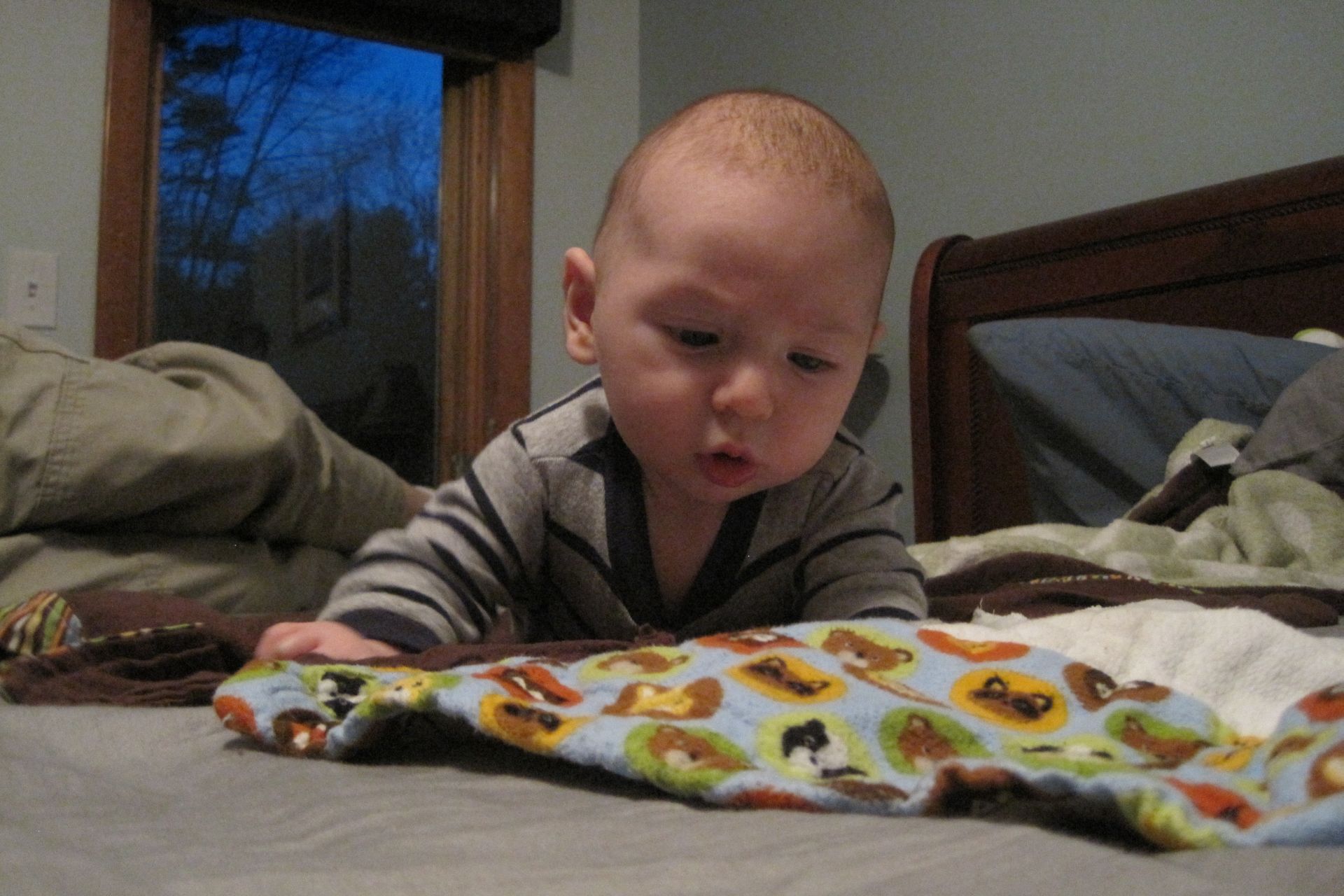 Reading his blankets 2.JPG