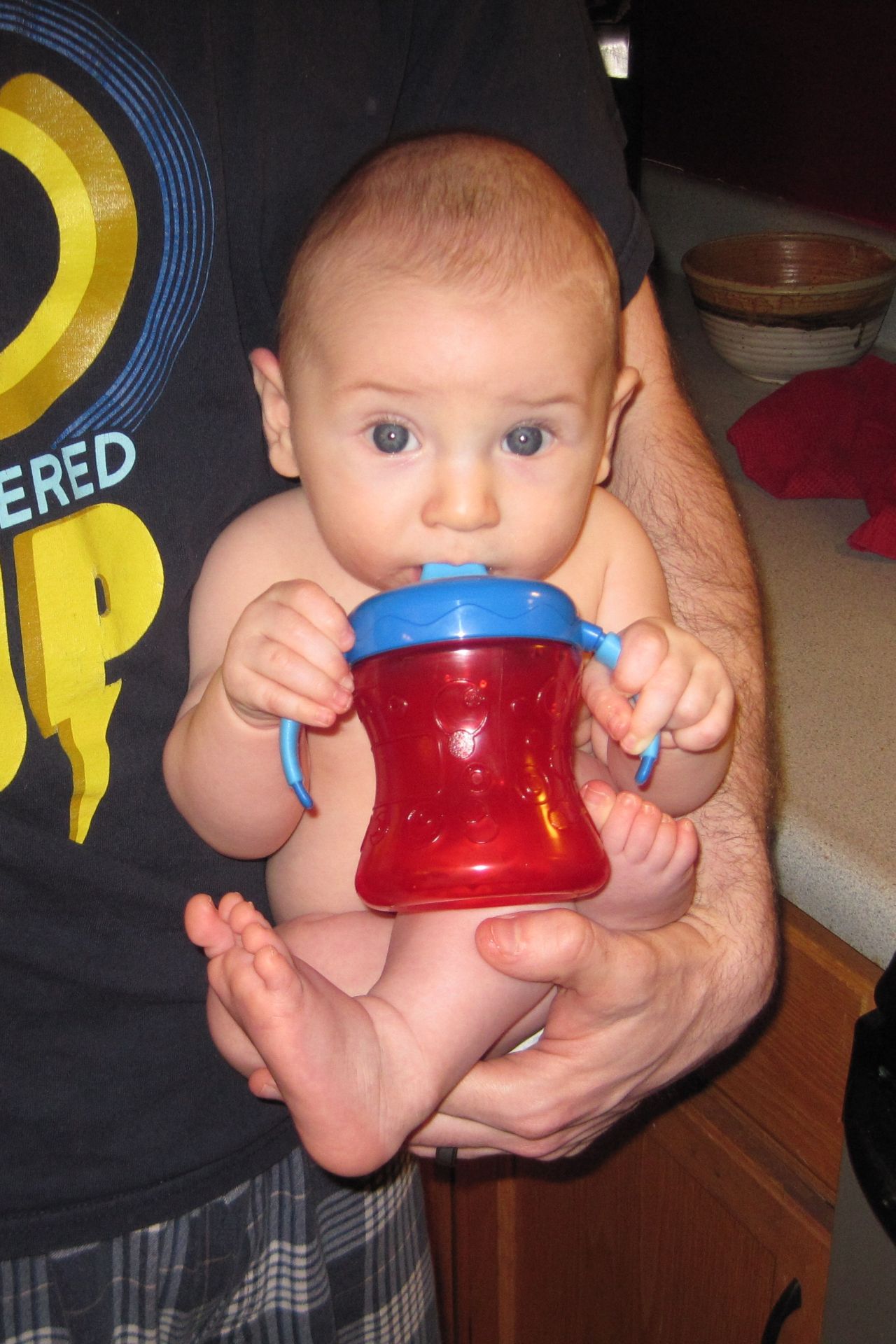 Trying out his sippy