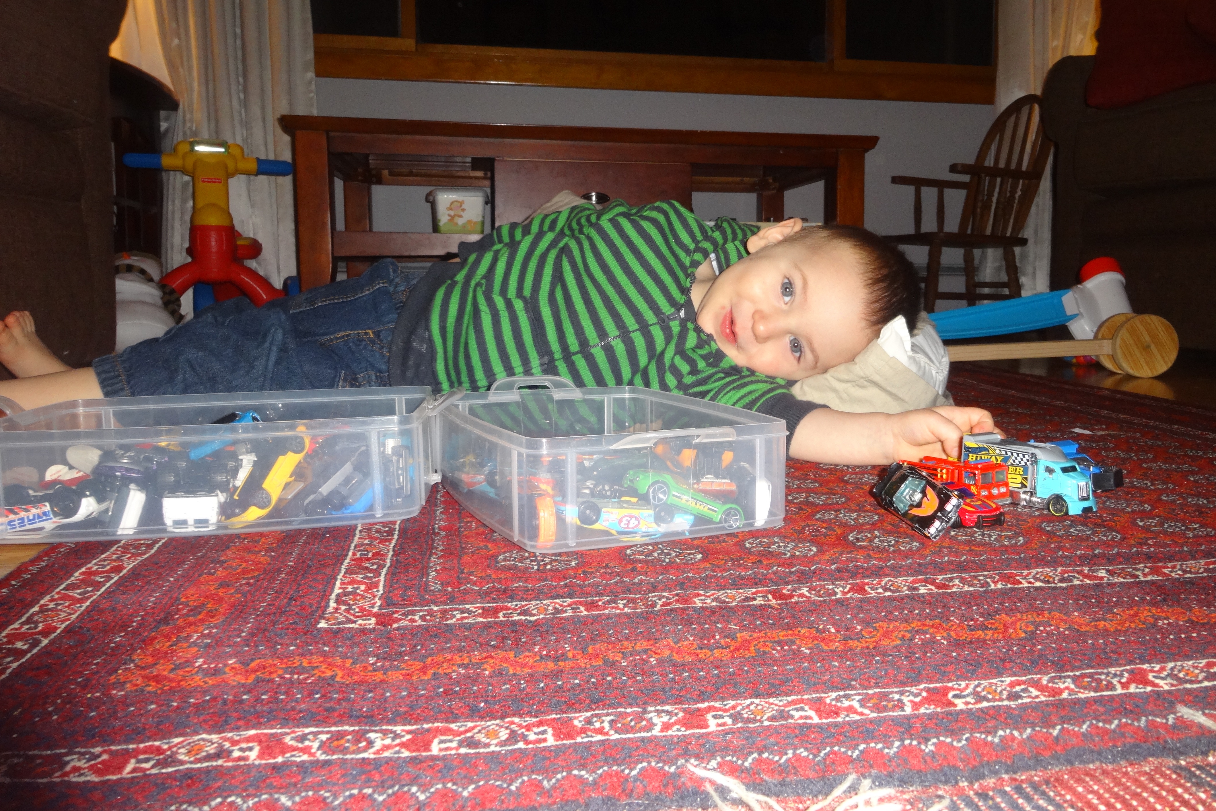 Happy With a Pillow and His Cars.JPG