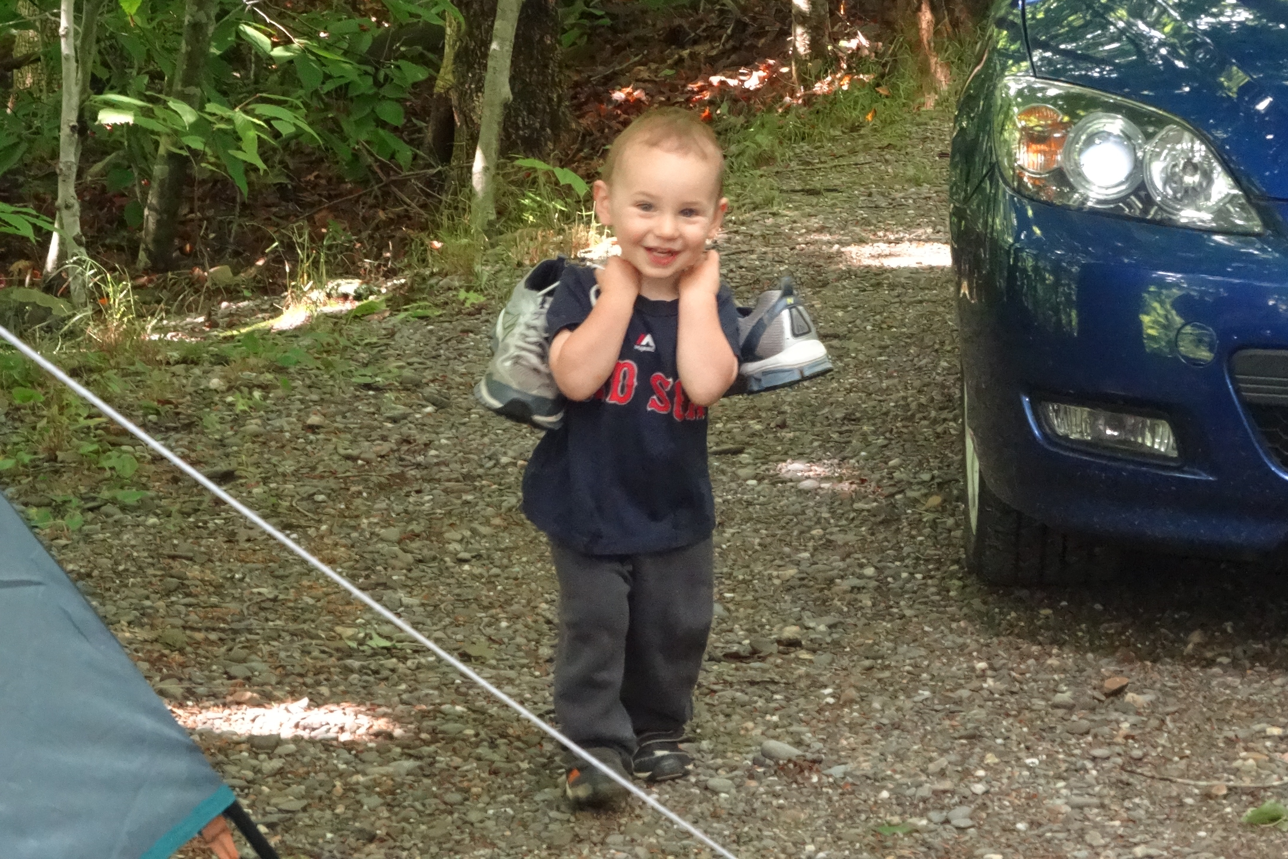 Helping to Bring Mommys Shoes to Dry Out.JPG