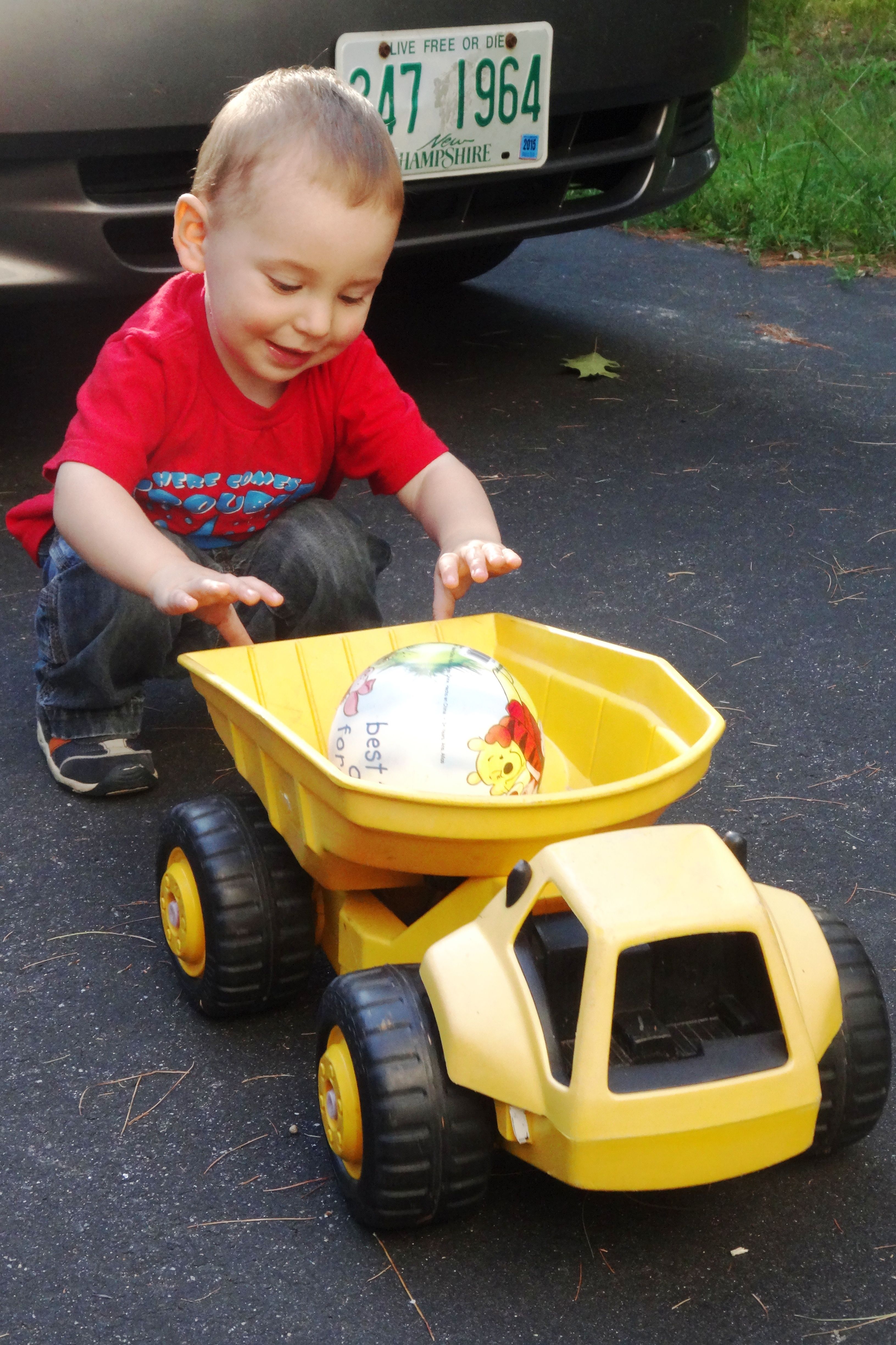 Pushing Dump Truck in the Driveway.JPG