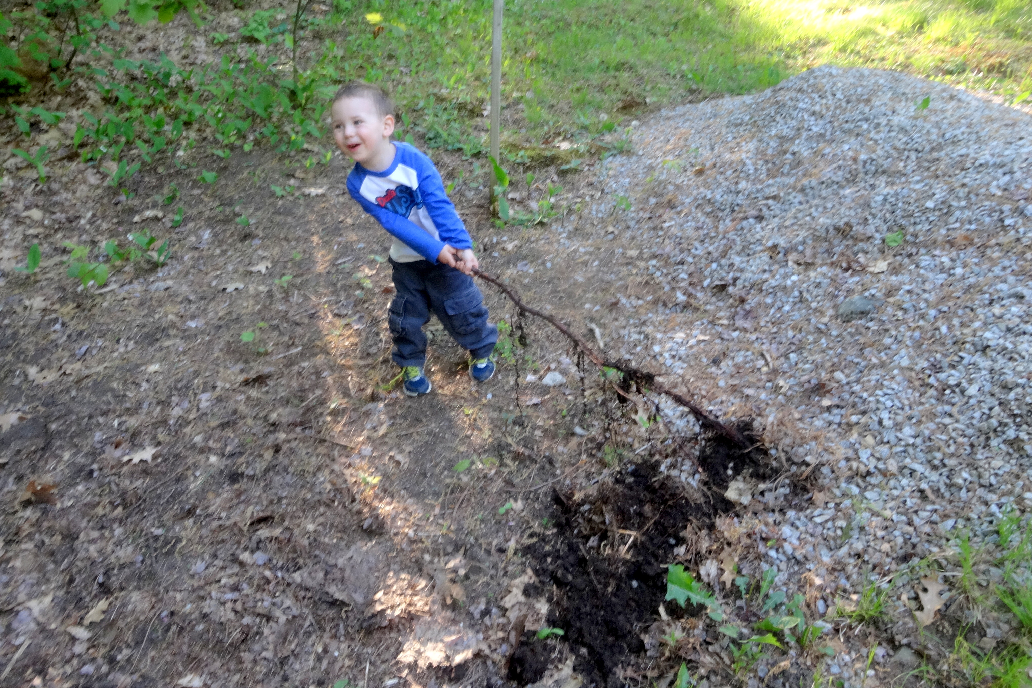 Helping to Pull Up A Weed Root.JPG