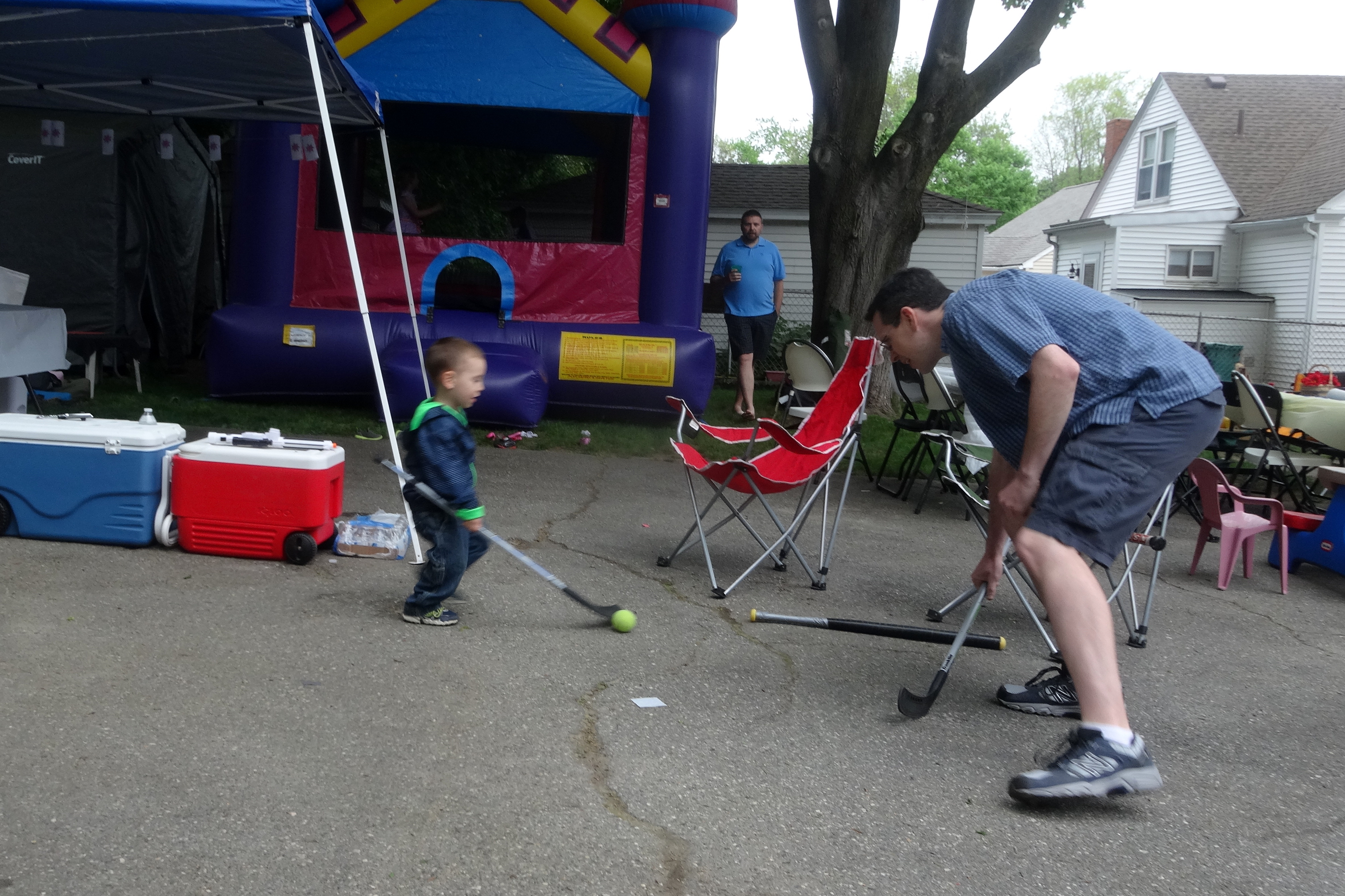 Trying to Deke Past Daddy.JPG