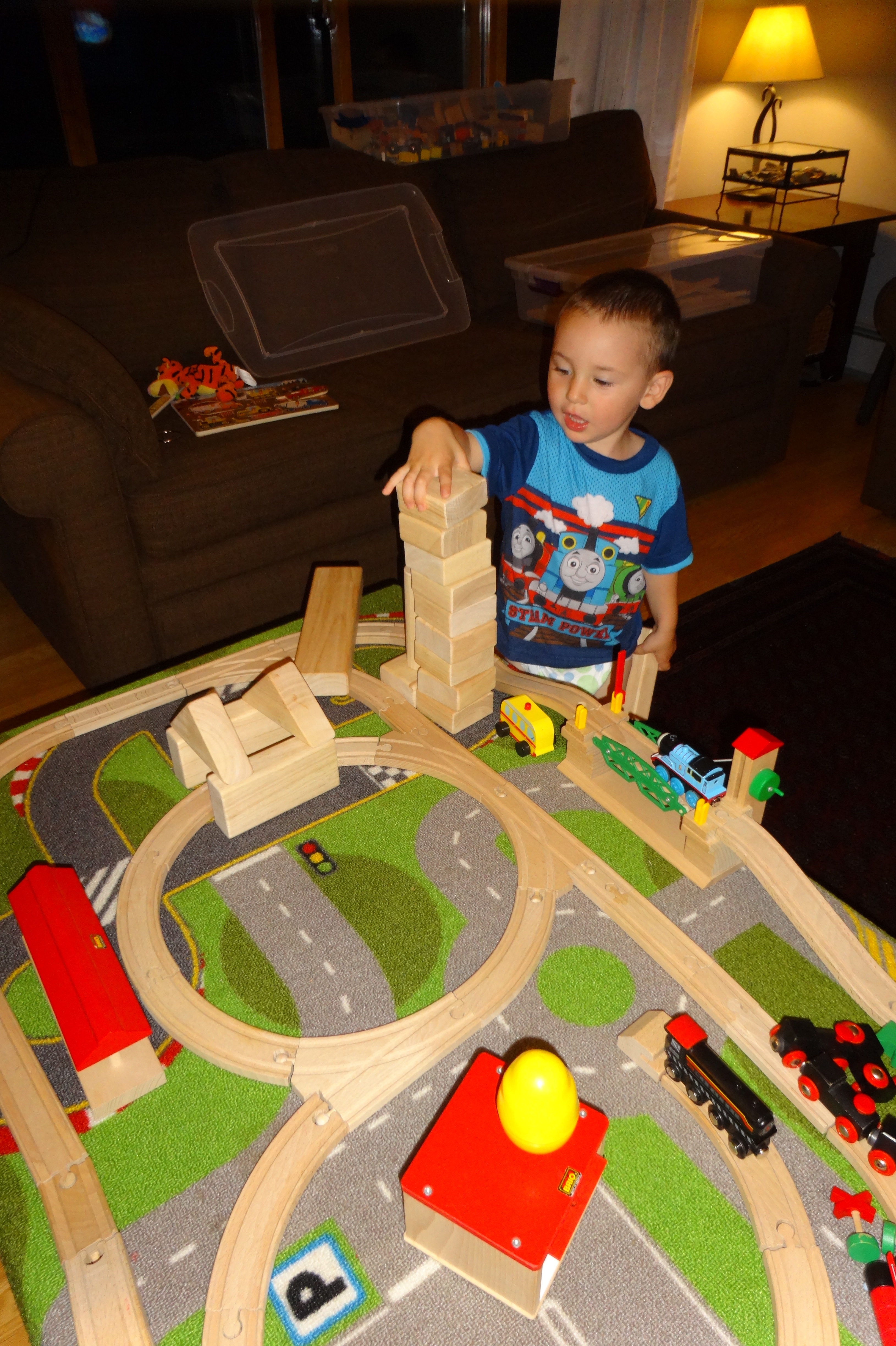 Creating a Skyline for His Train Town.JPG