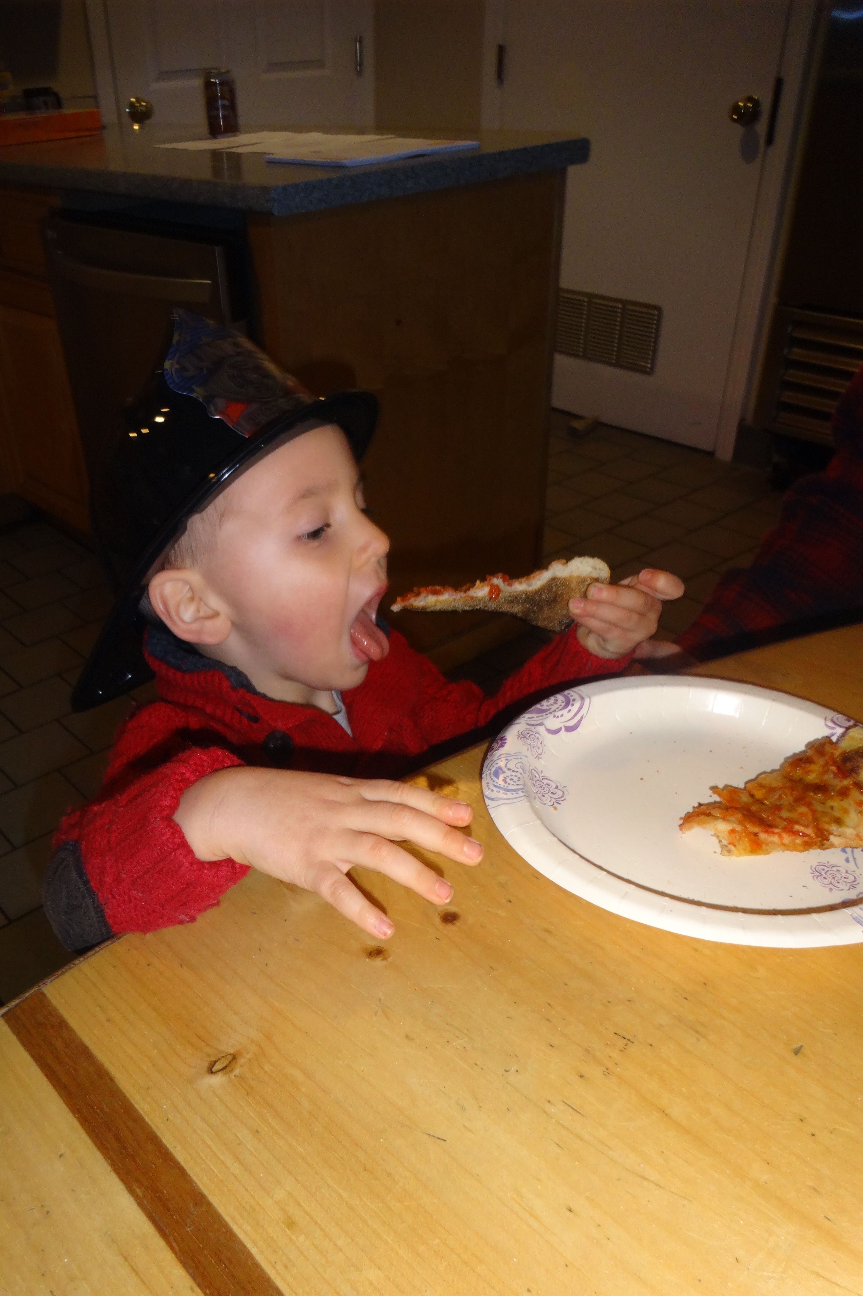 Eating Pizza in the Firefighters Kitchen