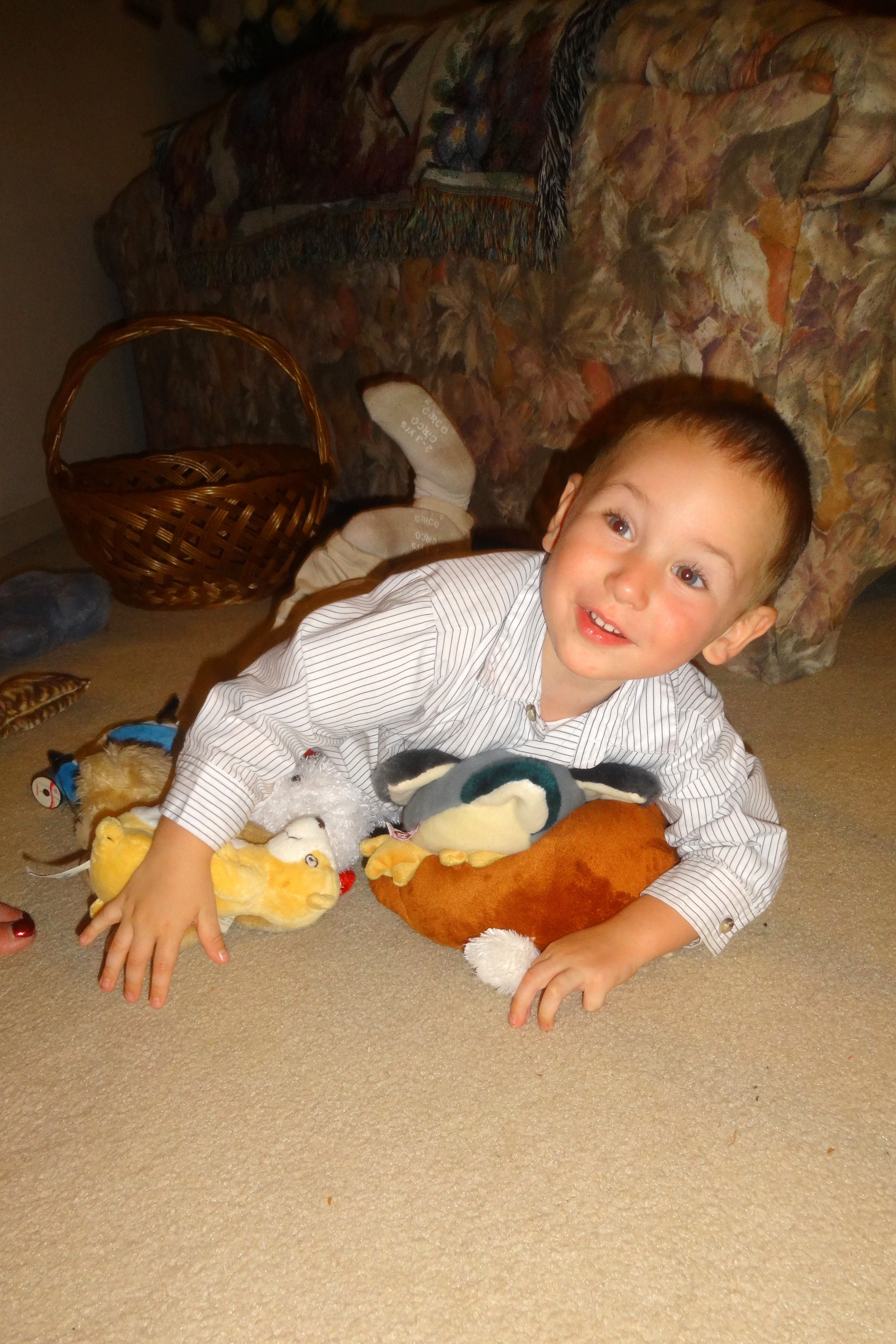 Flying Leap on Great Grandmas Animals.JPG