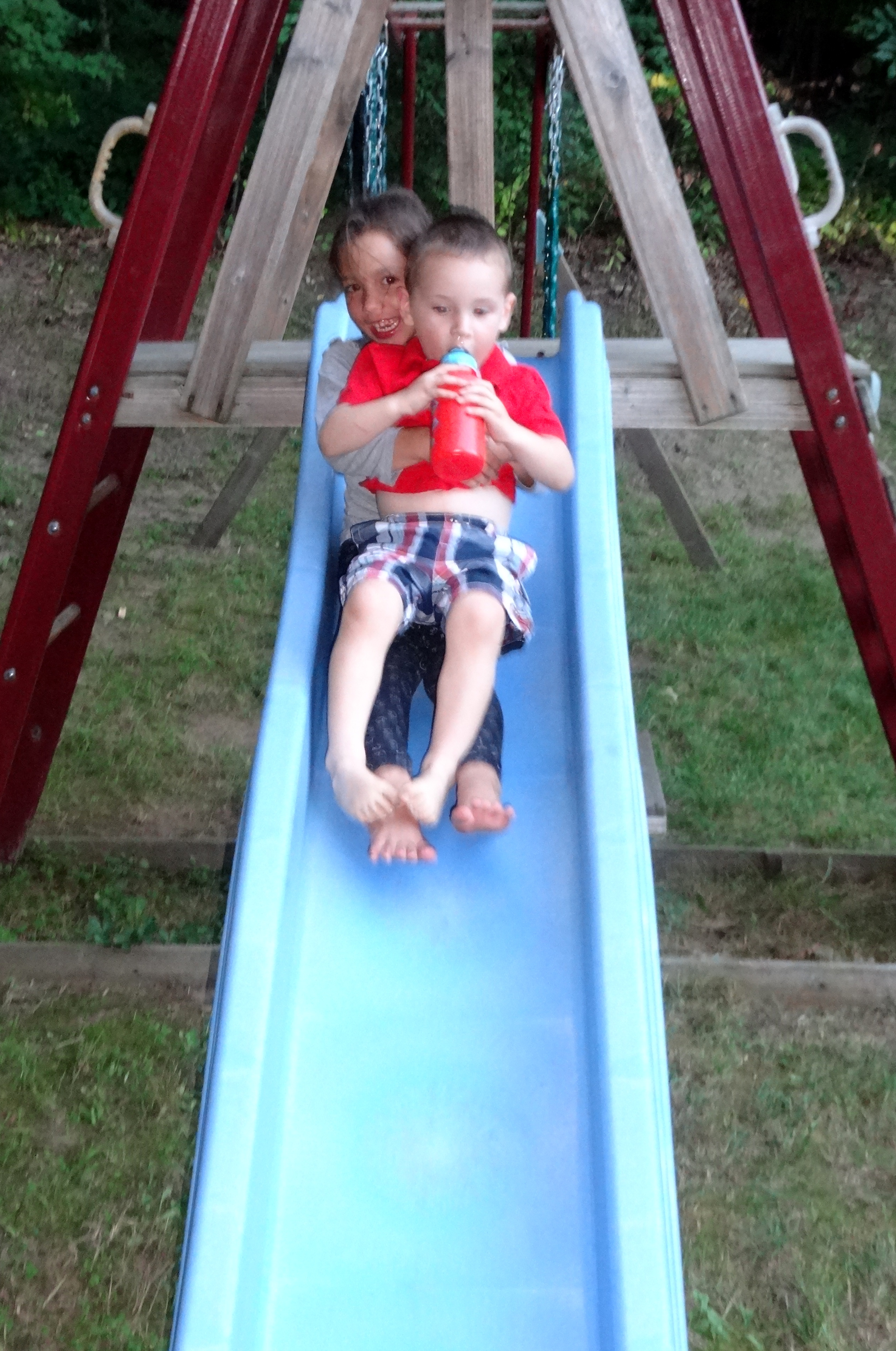 Heading Down the Slide with Alicia.JPG