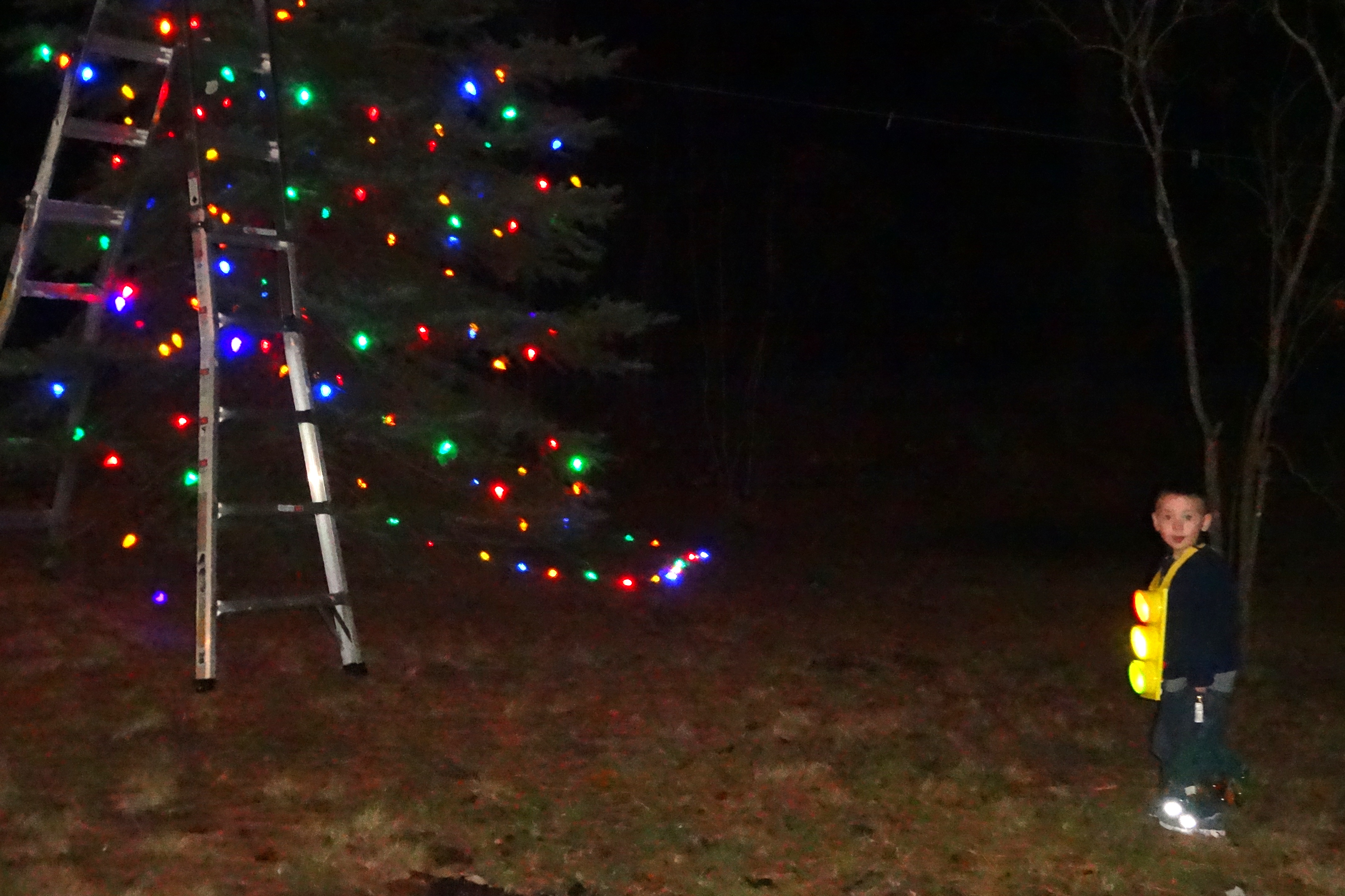 Little Man Outside Decorating With Daddy.JPG