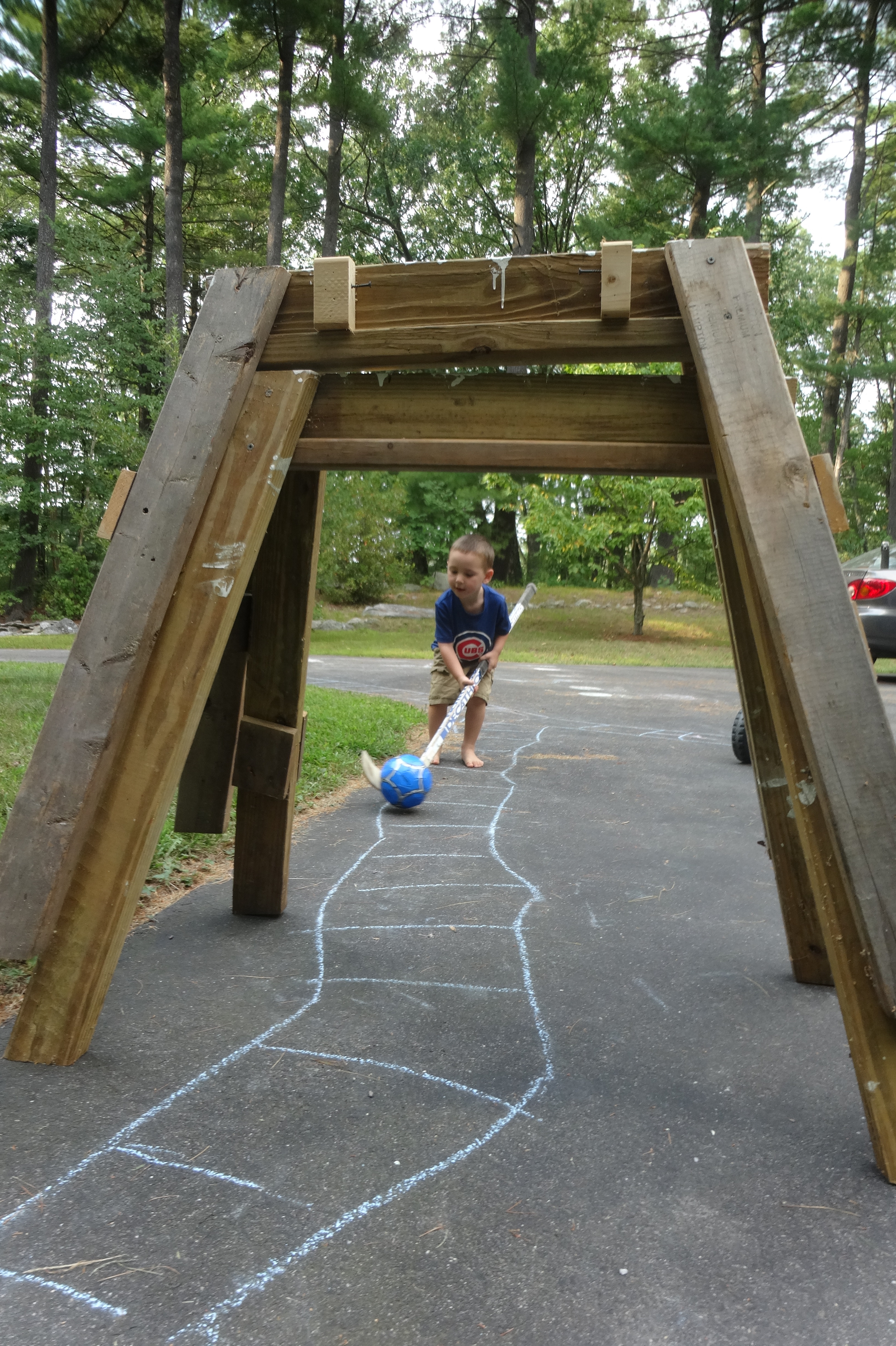 Setting Up His Shot Through the Saw Horses.JPG