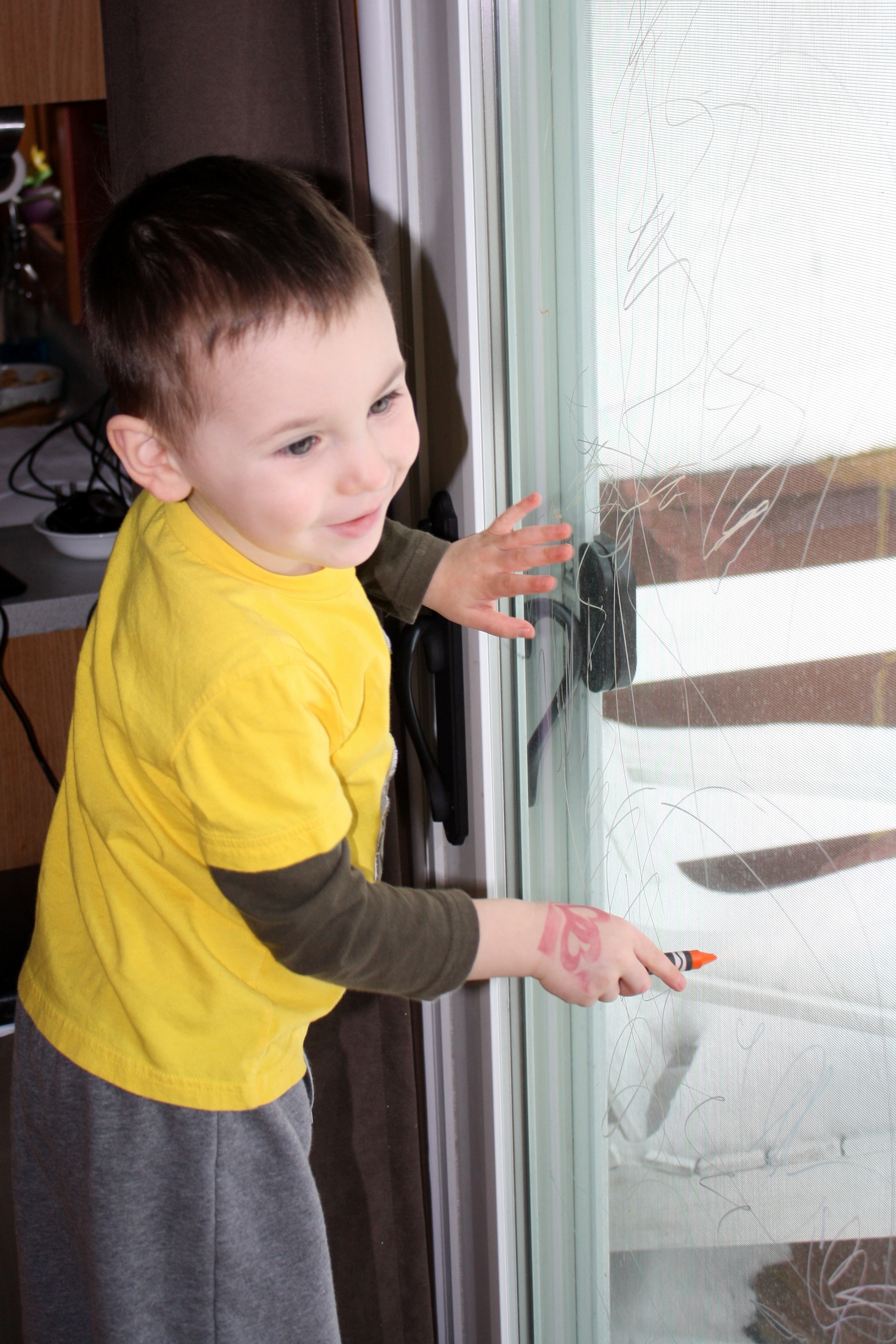 Happily Drawing on the Window.JPG