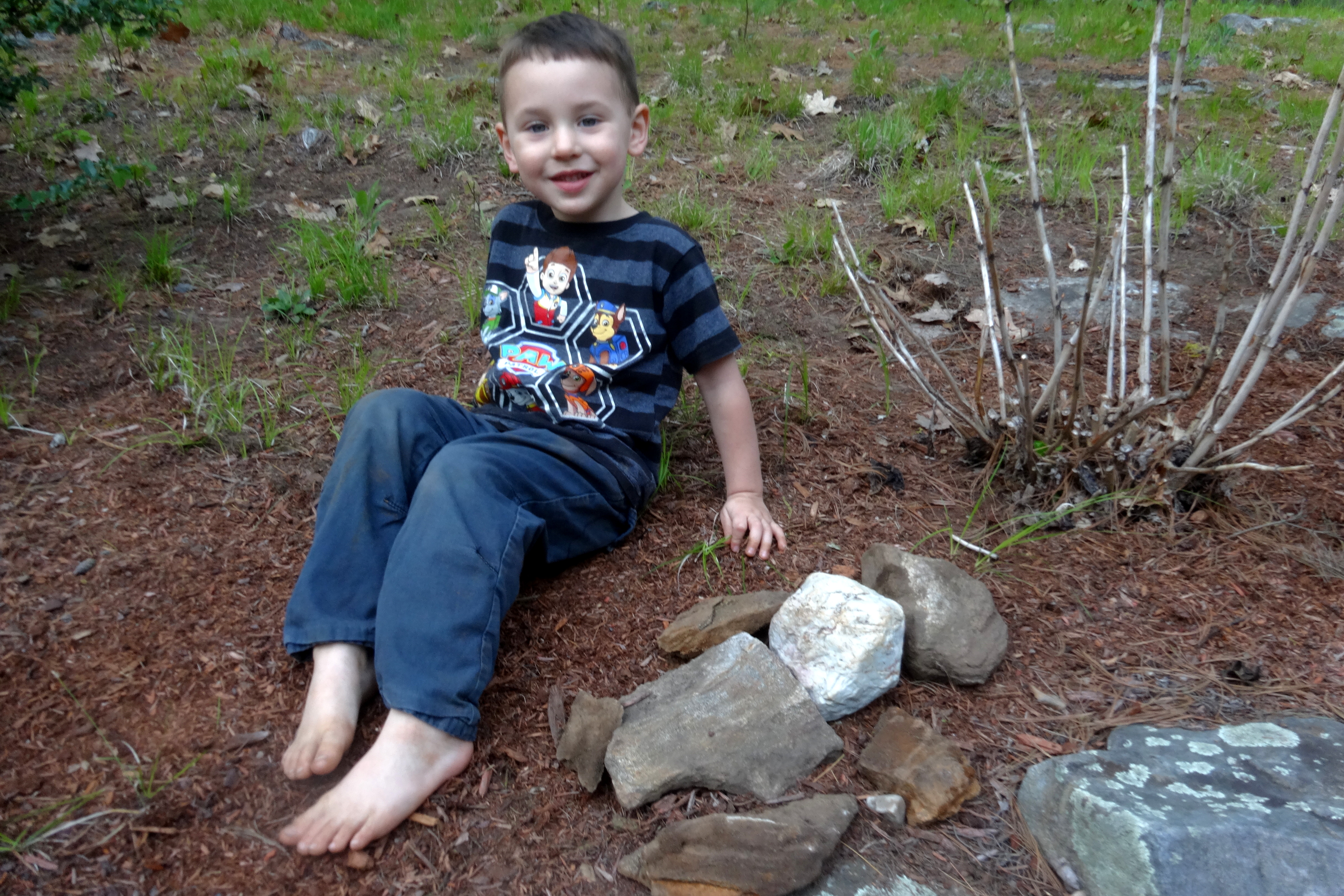 Sitting By His Man Statue Made from Rocks.JPG