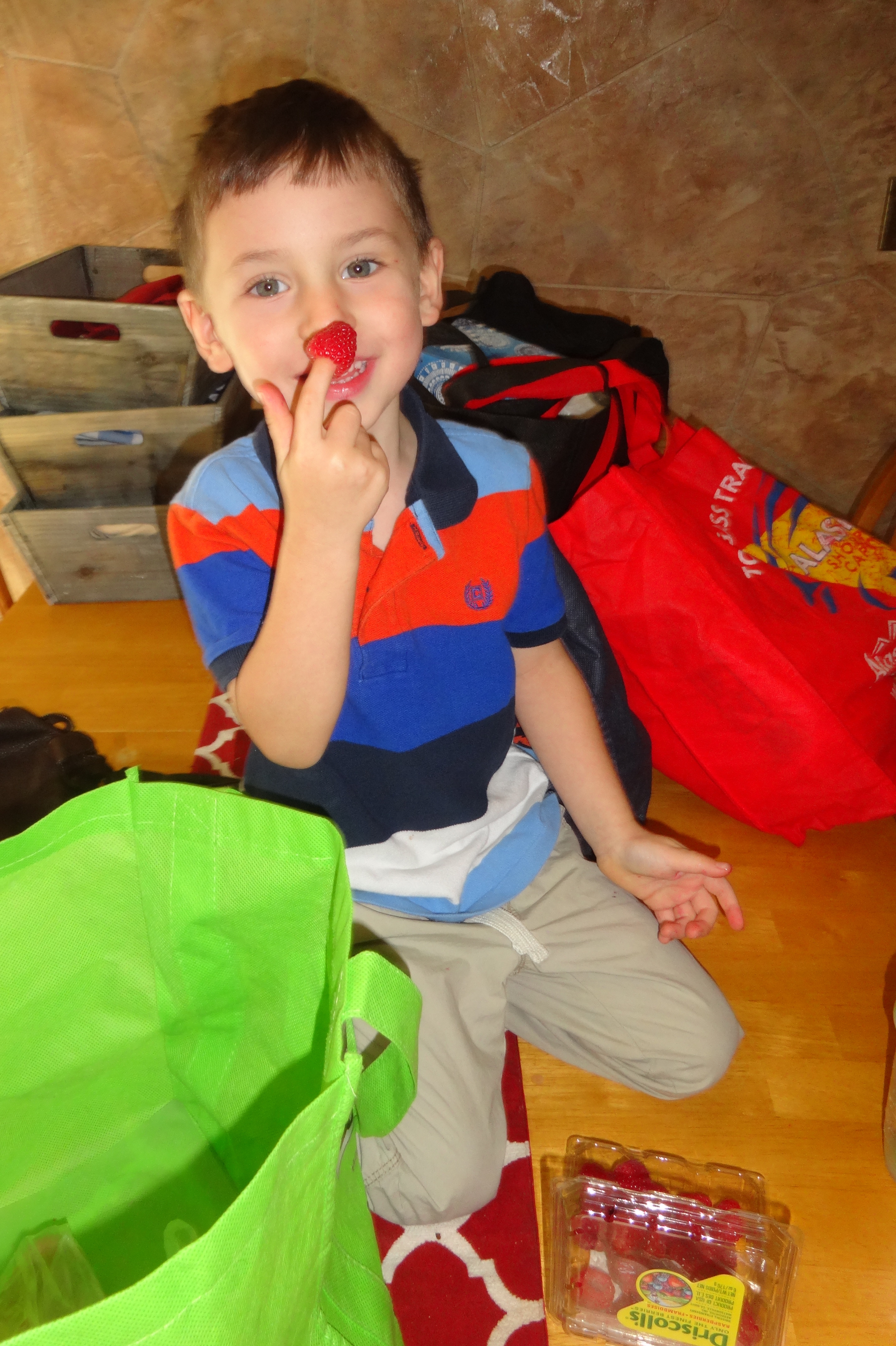 Demolishing the Raspberies Before Mommy Could Unpack the Groceries.JPG