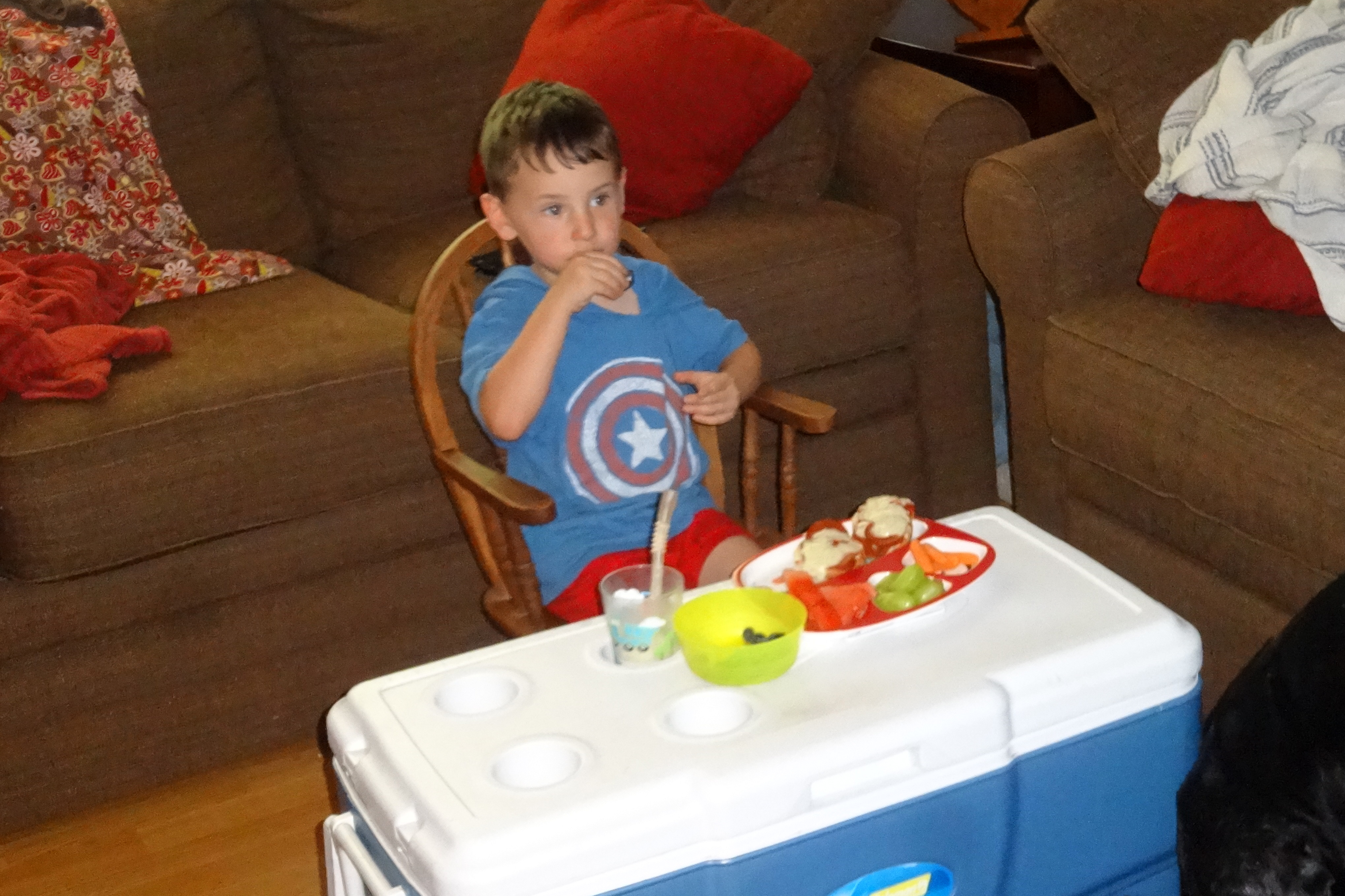Glued to the Olympics at Lunch.JPG