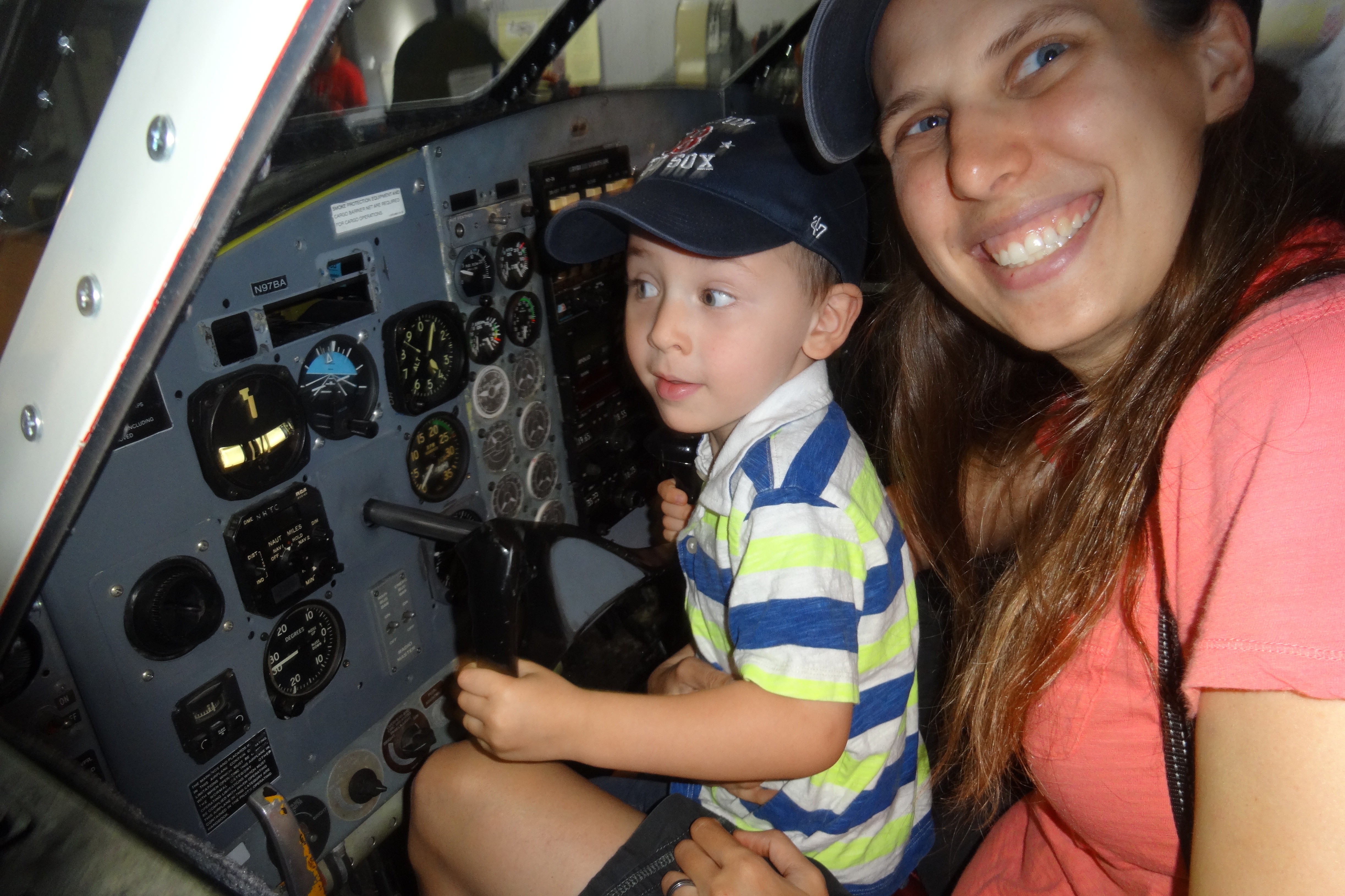 Thomas and Mommy in the Cockpit of the Embreaer.JPG