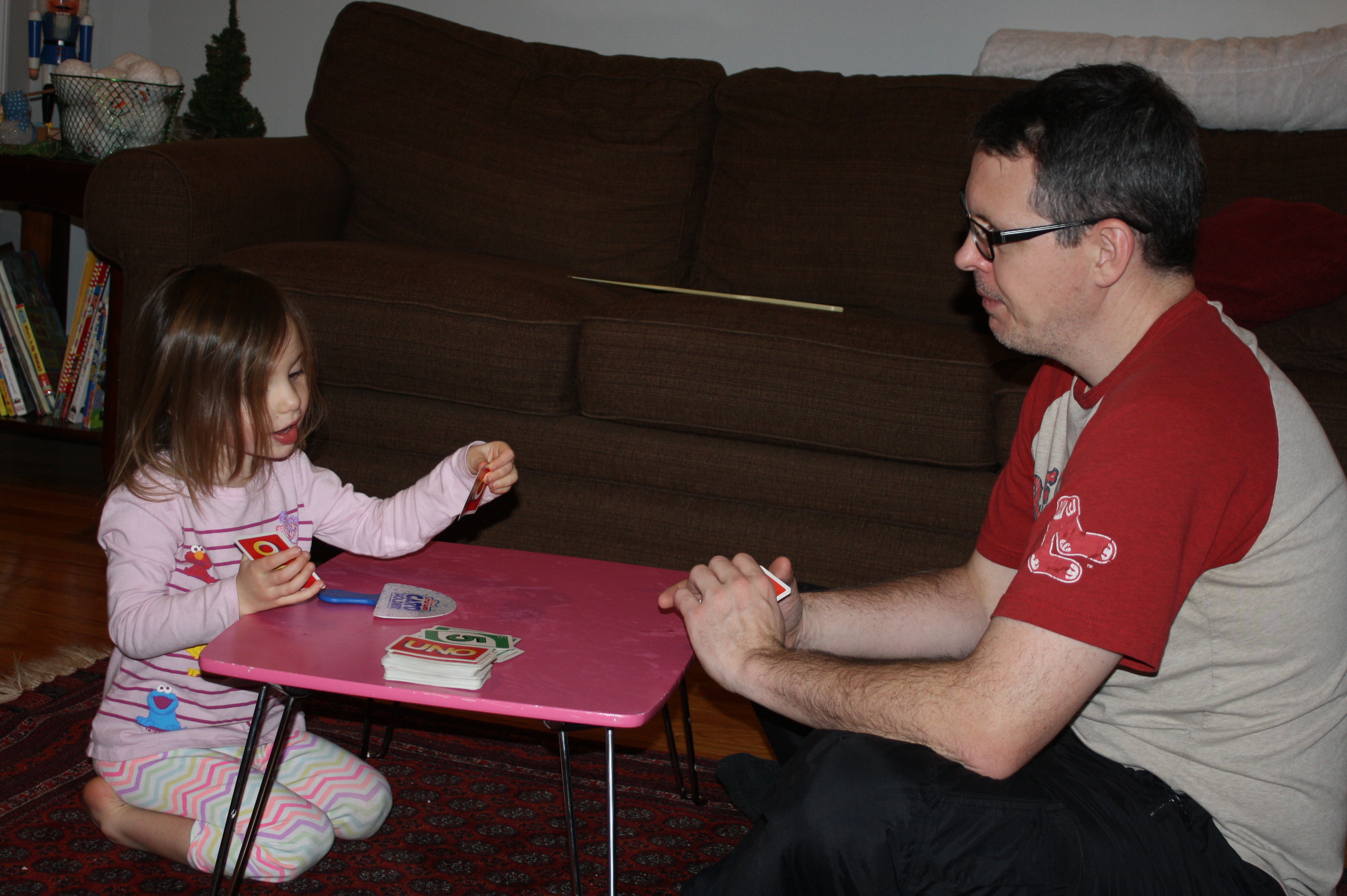 Evie Playing Uno With Daddy