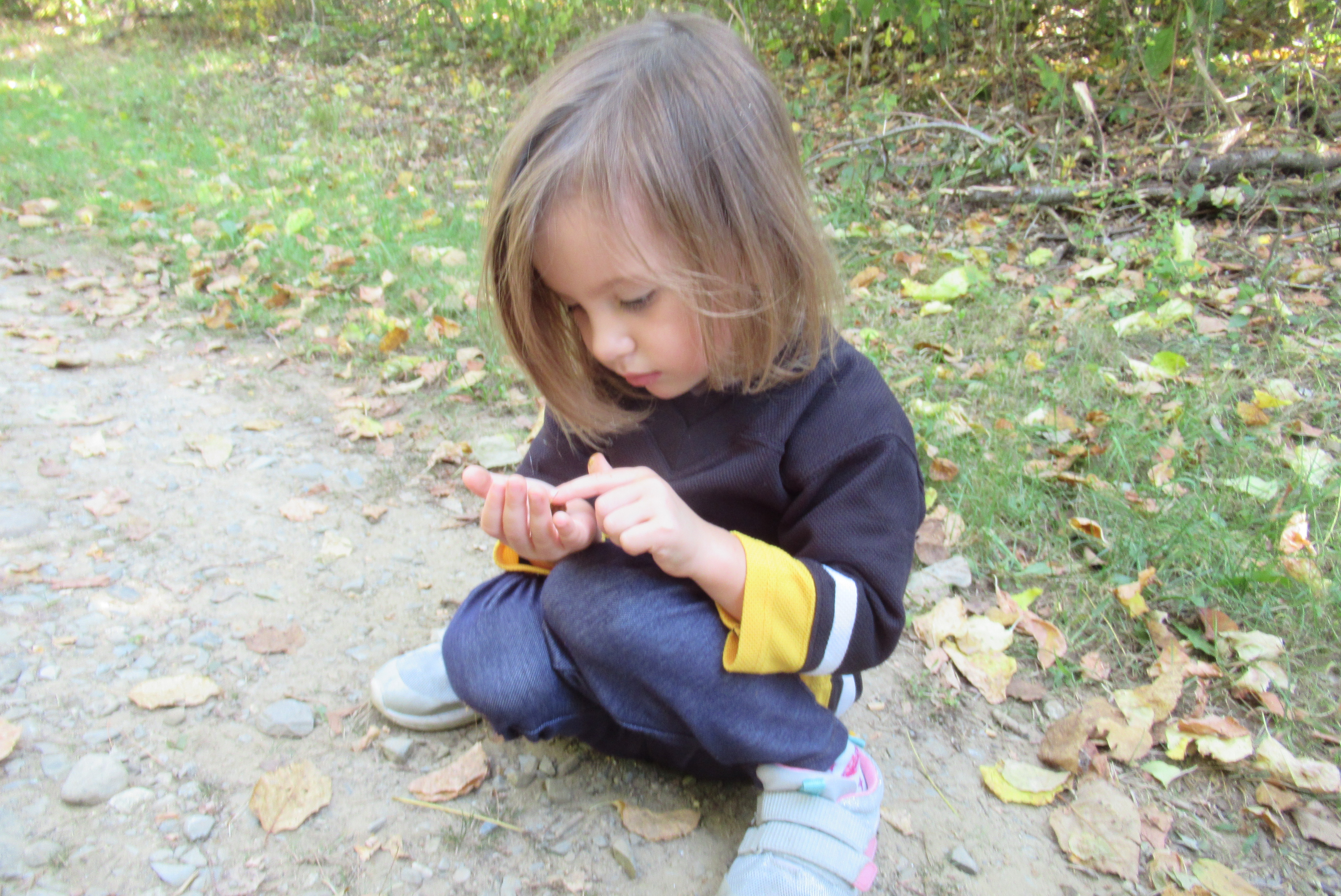 Petting Her Wooly Worm Friend.JPG