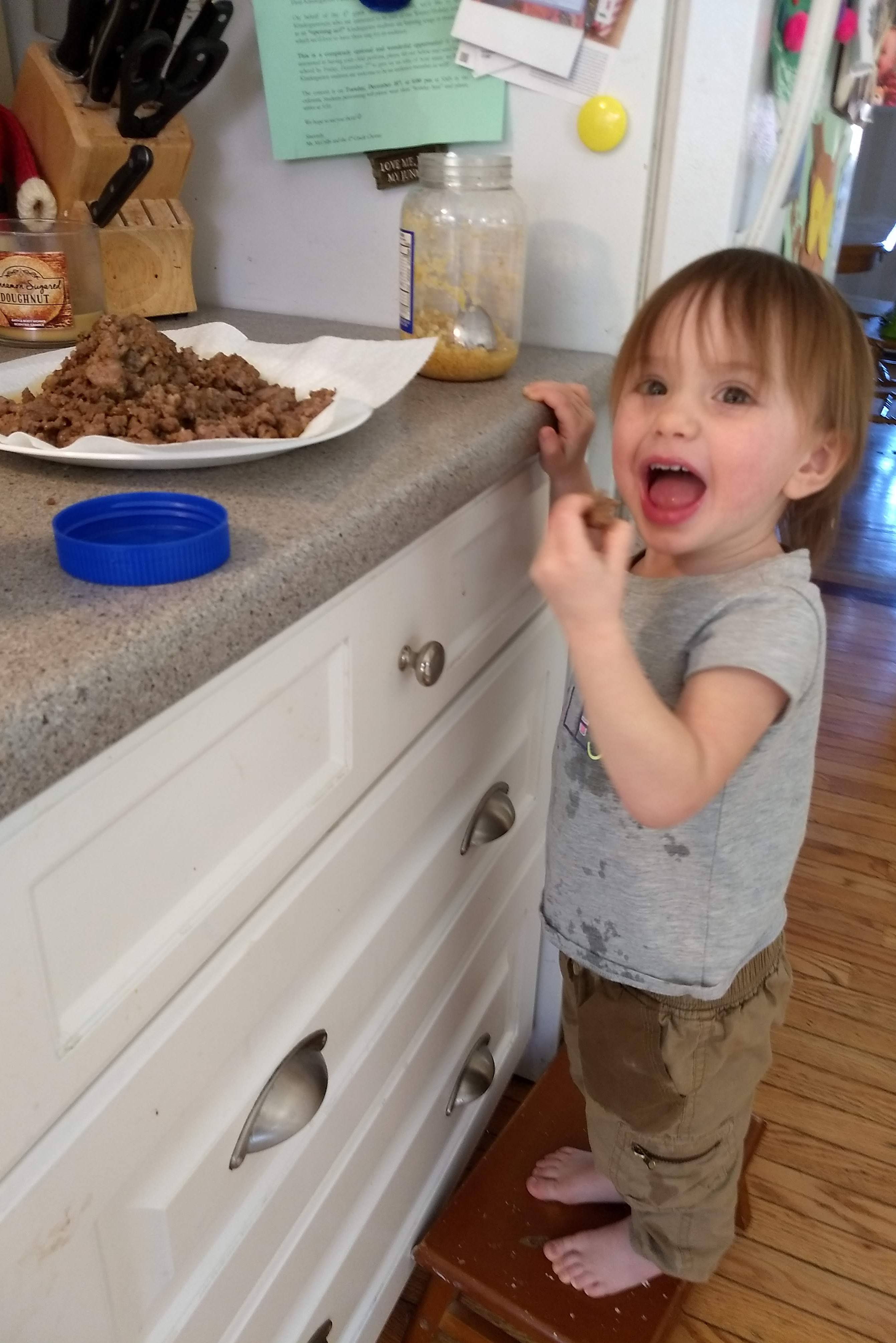 She Fetched a Step to Better Reach the Sausage.jpg