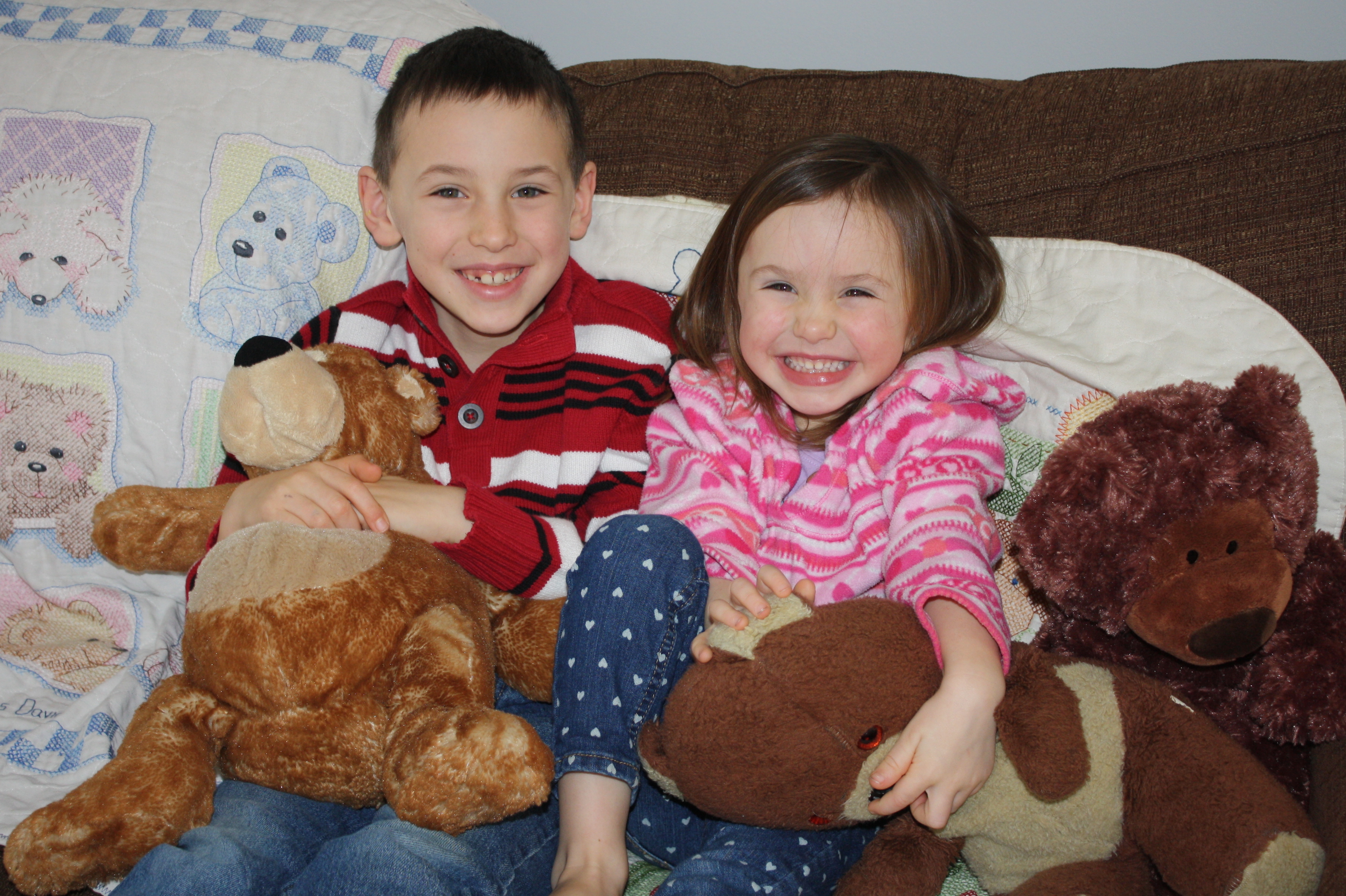 Siblings with a Pile of Bears
